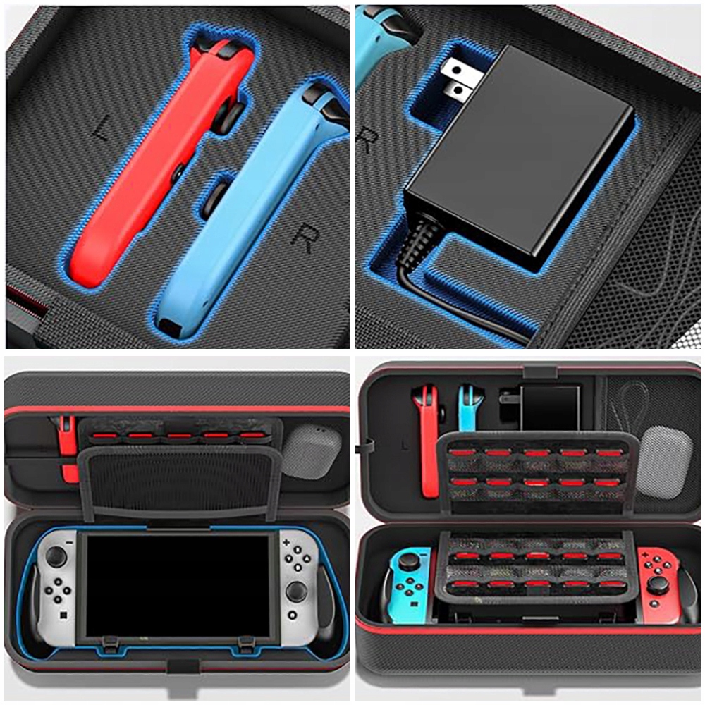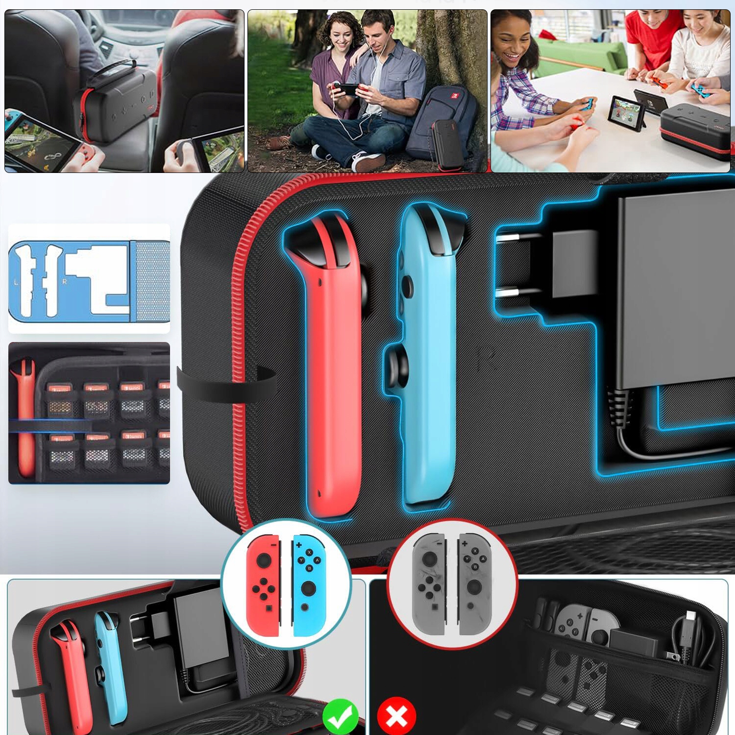 Корпус идеально подходит для перемещения. Он предлагает много места для хранения всех аксессуаров коммутатора. Он также обеспечивает точное хранение как Joy-Cons Switch, так и питания ЕС. Отдельные перегородки позволяют вам организовать другие аксессуары OLED переключателя, такие как кабели HDMI, полосы радости, наушники, зарядные кабели переключения и многие другие. Корпус также может хранить 20 игр Nintendo Switch, что очень удобно!