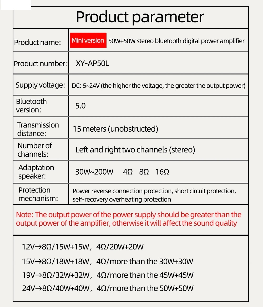 Примечание. Выходная мощность источника питания должна быть больше, чем выходная мощность усилителя, в противном случае это повлияет на звук.