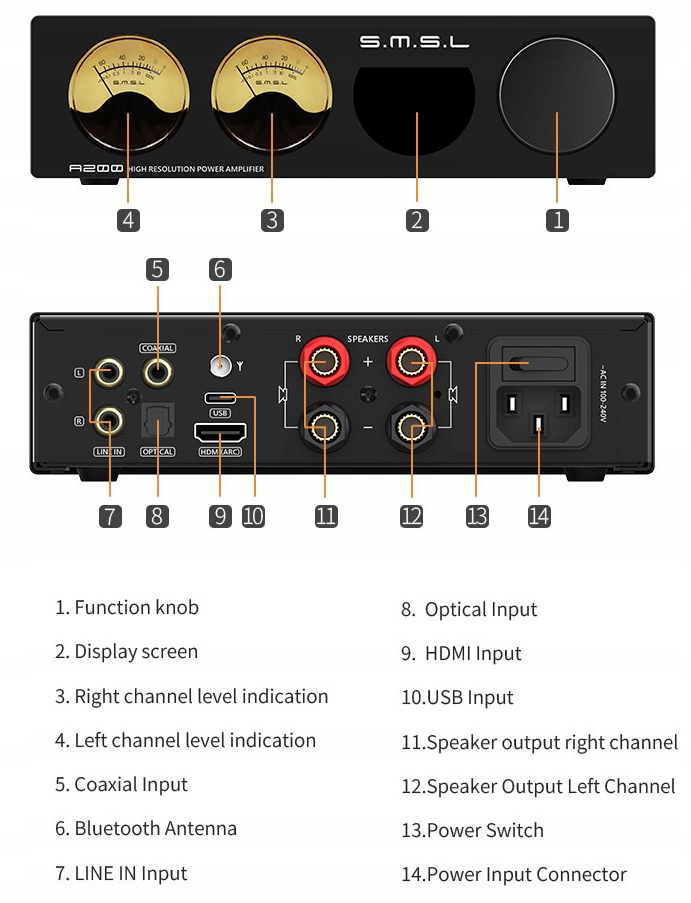 SMSL A200 - УСИЛИТЕЛЬ BLUETOOTH SPEAKER С ГРАФИЧЕСКИМ ИНДИКАТОРОМ