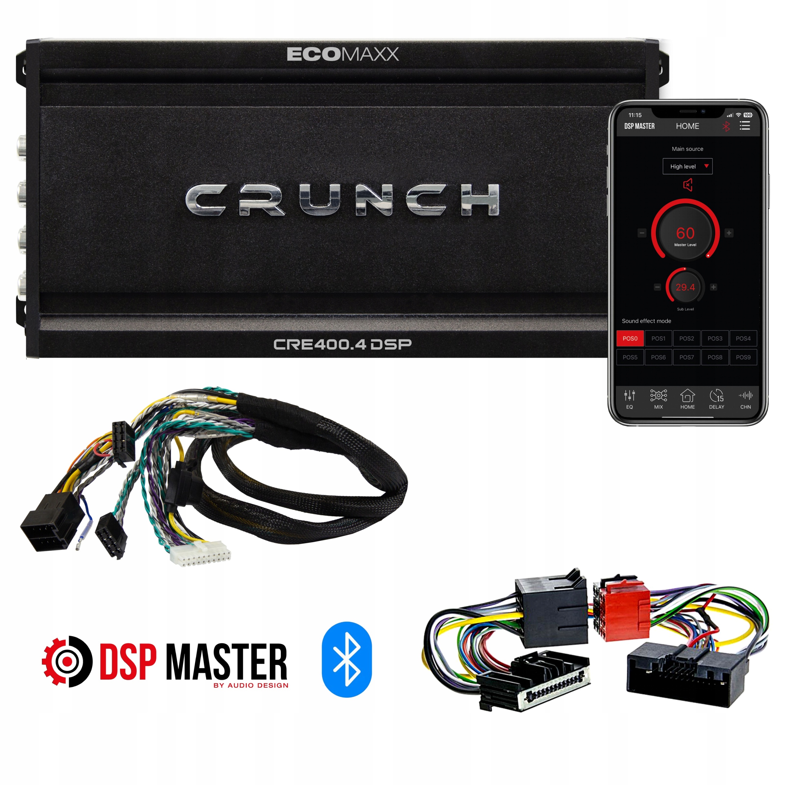 crunch cre400.4 dsp-m6 h1> четырехканальный усилитель, h1> 6-канальный звуковой процессор DSP h1> встроенный Bluetooth для звука h1> для управления смартфоном h1> iso + ford/ rover pplier. С процессором CRE400.4DSP и кабельным лучом ISO, который позволяет подключать подключение и воспроизведение к аудио -установке в Ford, Land Rover Cars - более старые модели