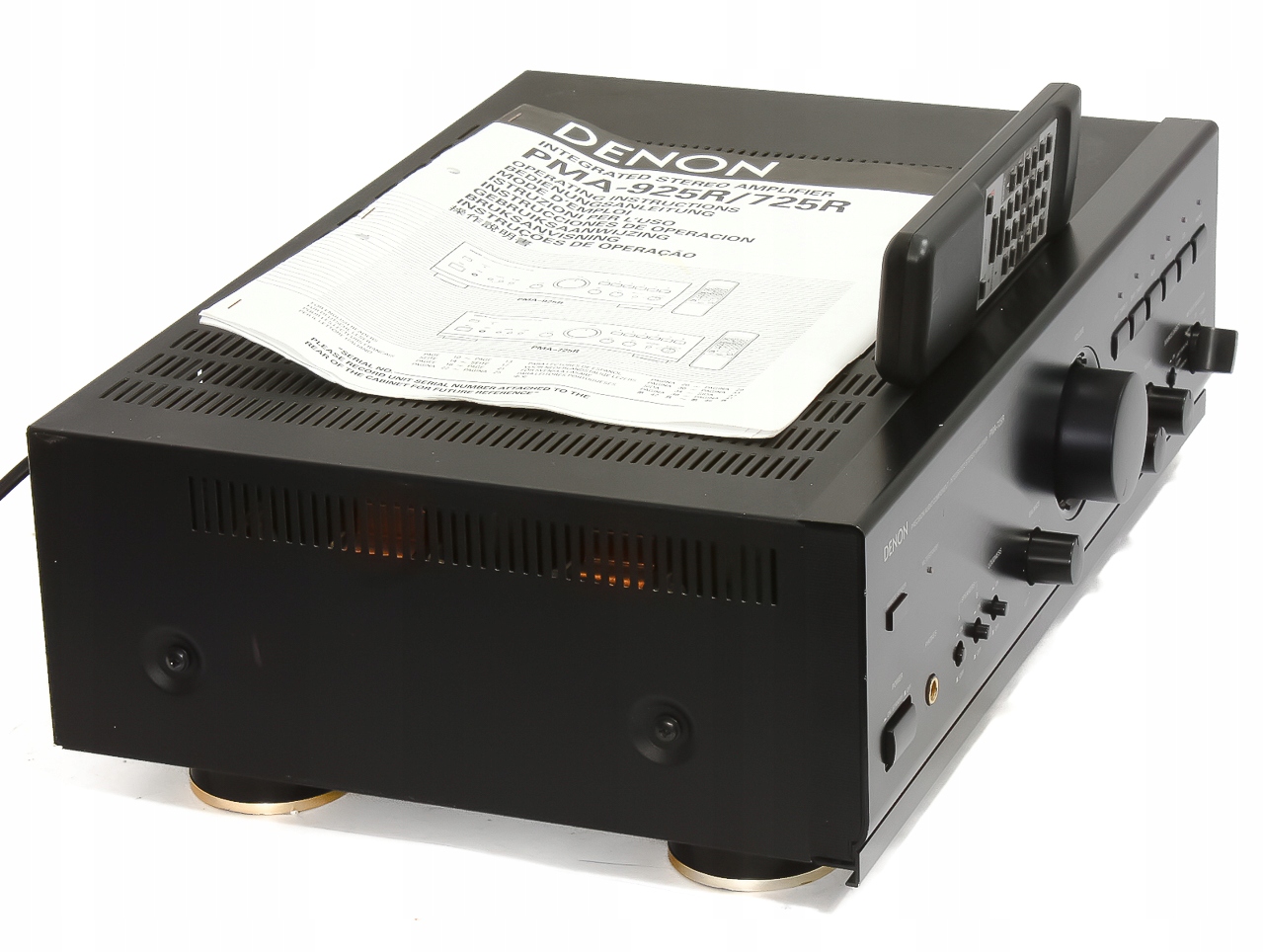 Предмет продажи — усилитель Denon высокой модели. PMA-725R сделан лучше и играет лучше, чем продаваемый в настоящее время аналог PMA-710AE. Устройство массивное, и не только из-за прочной передней панели и прочного основания. Секция питания была сделана добротно – два трансформатора. В блоке питания также имеются приличные фильтрующие конденсаторы. Транзисторы размещены на медном экране, прикрепленном к радиатору. Усилитель очень эффективен и имеет большой запас мощности. Таким образом, он способен работать с большими напольными динамиками. Звук PMA-725R обеспечит динамику, низкие, мощные, но дисциплинированные басы, теплые, естественные средние частоты и качественные, не резкие высокие тона. Оснащение впечатляет — дополнительный усилитель громкости, фонокорректор, ручка перенаправления выбранного сигнала на записывающее устройство, 5 линейных входов и качественные большие колонки-разъемы. Рекомендую!