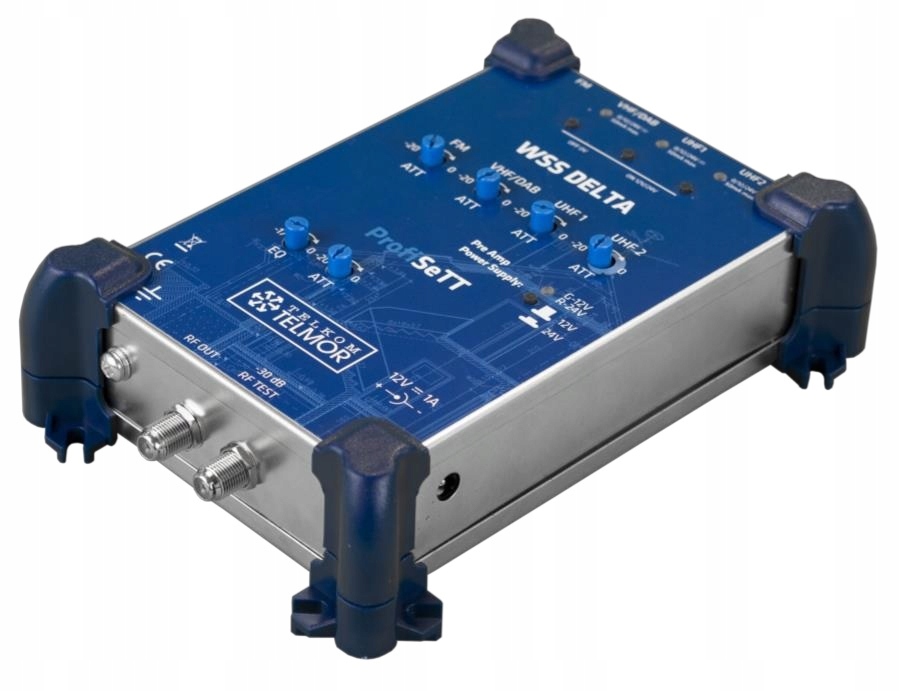 WSS Delta — это профессиональный усилитель диапазона для использования везде, где важно качество принимаемых теле- и радиосигналов. Он позволяет суммировать сигналы с 2 ДМВ, одной УКВ и одной FM антенн. Благодаря возможности питания предусилителей при использовании активных антенн нет необходимости использовать кроссоверы мощности. Каждый входной сигнал фильтруется в соответствии с диапазоном частот для данного входа (входы УВЧ дополнительно фильтруются благодаря технологии 5G Protected), а затем усиливается малошумящими предусилителями. Благодаря специальным плавно регулируемым аттенюаторам вы можете установить оптимальный баланс входящих сигналов. Затем сигналы суммируются и снова усиливаются. Устройство имеет регулировку выходного уровня и коррекцию суммируемых сигналов. Благодаря этому корректировка потерь сигнала, возникающих из-за кабелей и пассивных компонентов, может быть эффективно реализована для большинства установок SMATV.