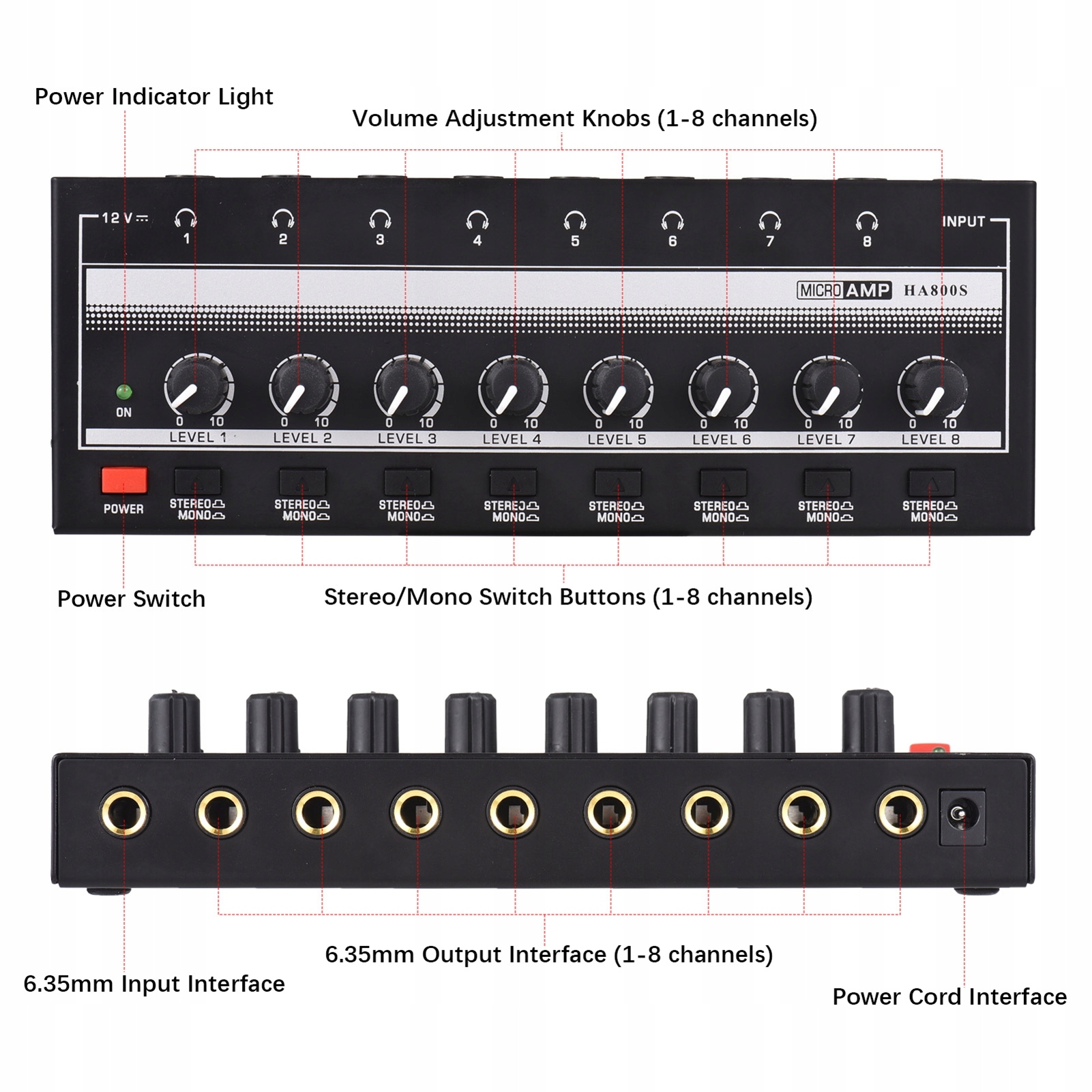Усилитель наушников HA800S 8 Стереоканалы Mono/Stereo Metal 3S