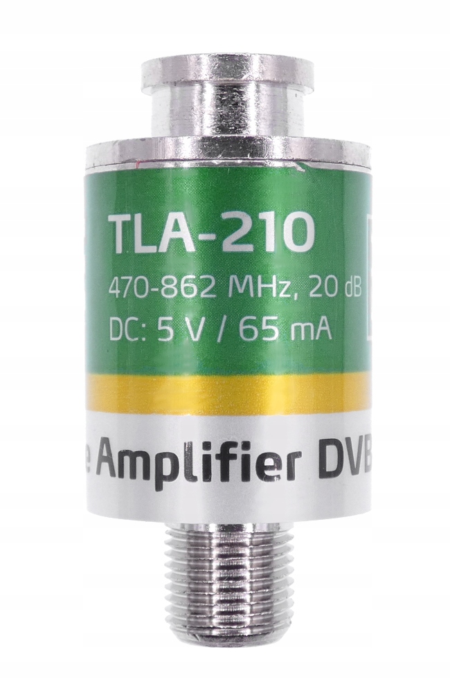 Широкополосный линейный усилитель DVB-T с внешним питанием 5 В (например, от тюнера DVB-T/T2) в прочном алюминиевом корпусе.