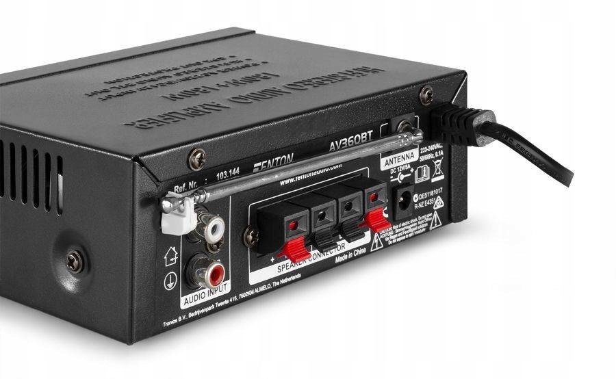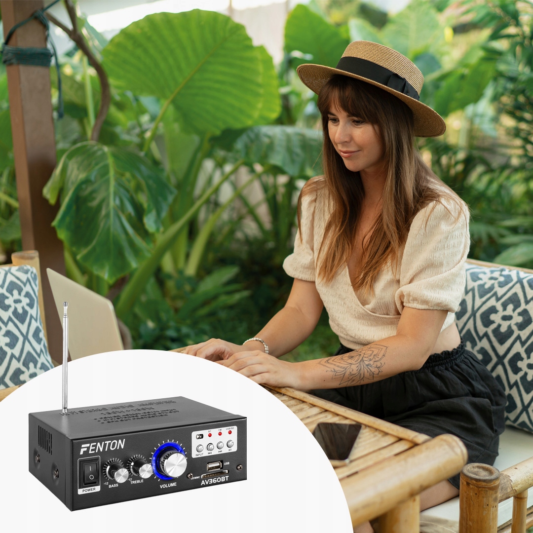Fenton AV360BT — удивительно компактный усилитель с множеством возможностей. Несмотря на свой небольшой размер, этот усилитель по-прежнему способен передавать на динамики мощность 2x40 Вт (макс.). AV360BT оснащен такими полезными опциями, как Bluetooth, встроенным MP3-плеером и FM-радио. К усилителю также можно подключить внешний источник, например компьютер, ноутбук, микшер, MP3-плеер и т. д.
