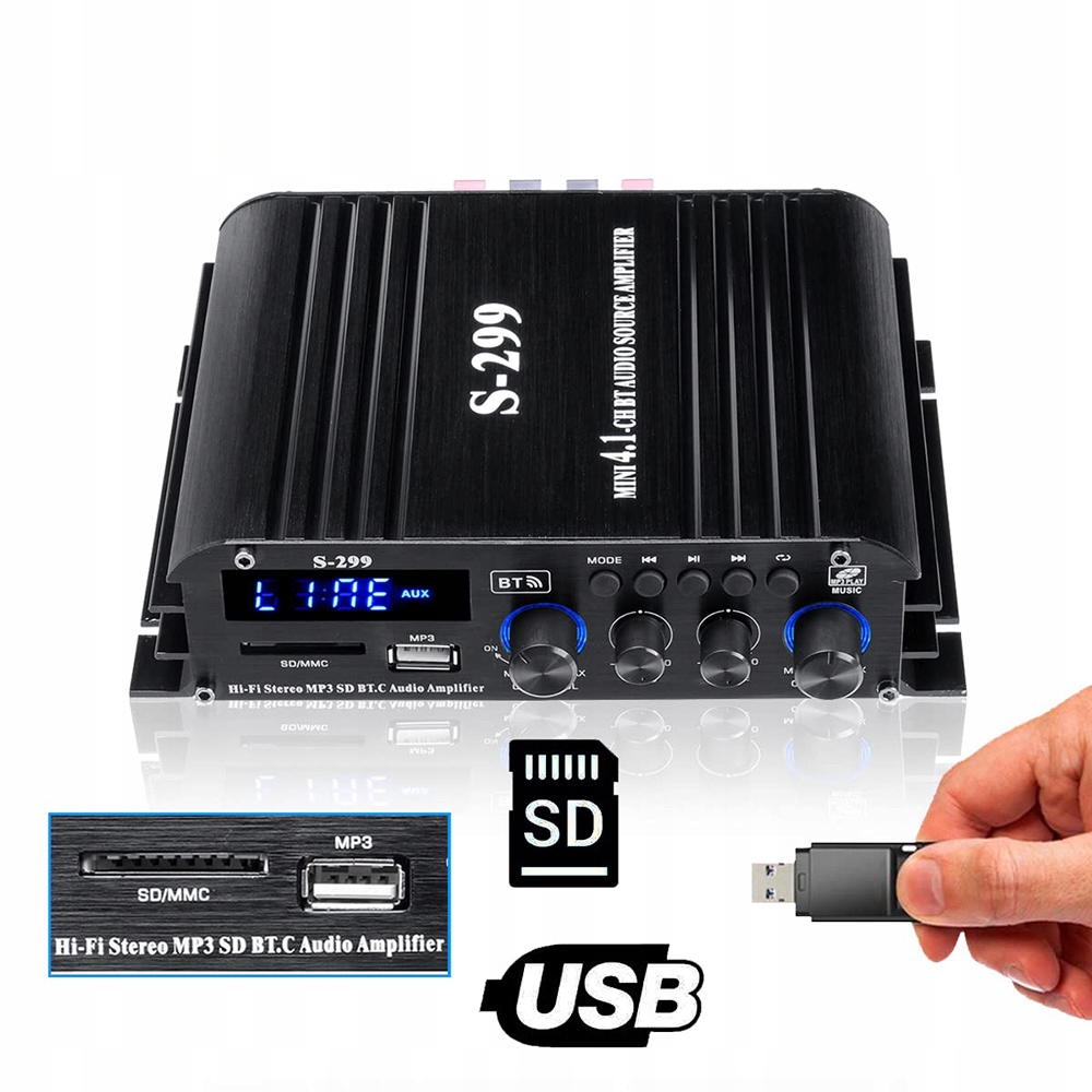 Hi-Fi 4.1 S-299 Bluetooth-усилитель с USB/SD/AUX, 40 Втx4, макс. 800 Вт, сабвуфер