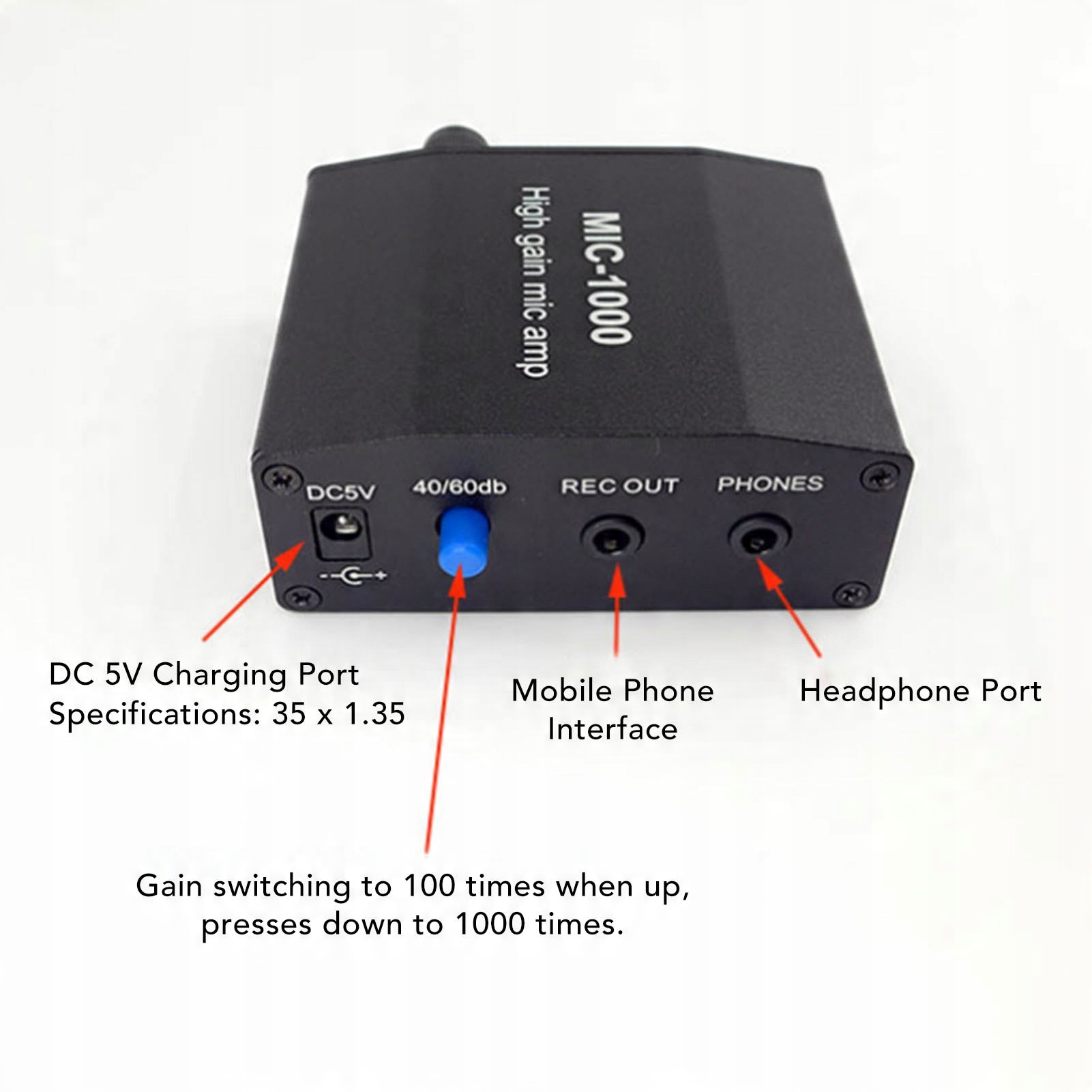 1. Усилитель микрофона: высокая чувствительность, автоматическое управление уровнем ALC, в 1000-кратное усиление, которое позволяет услышать слабые звуки.