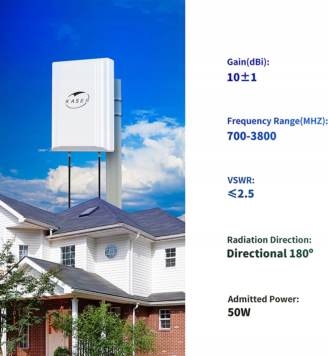 Антенна KASER 5G 4G LTE Наружная панель Mimo 698-2700 | Усиление 3300–3800 МГц до 12 дБи. Совместимость с маршрутизатором 5G 4G. Разъем N-SMA с TS9 и кабелем с низкими потерями 2 x 10 м — модель V3
