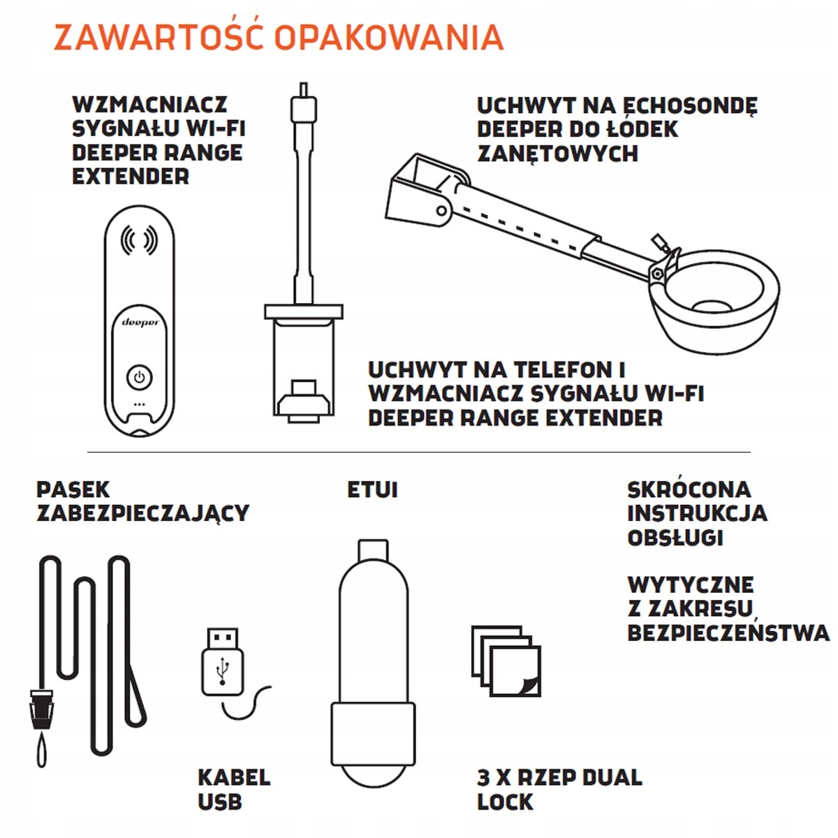 Deep Range Extender является сертифицированным, расширенным и водонепроницаемым устройством, которое усиливает сигнал Wi-Fi до 200 метров. Он легко устанавливается и легко подключается к телефону и Echosonde. Он не требует каких -либо кабелей или постоянного источника питания, потому что он имеет батарею, которая может работать до 14 часов. Владелец телефона и усилитель сигнала Wi -Fi подходят для большинства телефонов и гибкий.