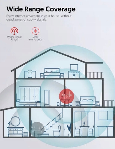 - [Порт Ethernet и режим точки доступа] Может работать как устройство ввода или вывода, двустороннее проводное соединение, не только работать как ретранслятор, но также может быть идеальной точкой беспроводного доступа. Порты Ethernet расширяют зону действия существующей сети Wi-Fi и позволяют подключать к сети Wi-Fi любое проводное устройство, например телевизор Smart TV, медиаплеер, игровую консоль или компьютер