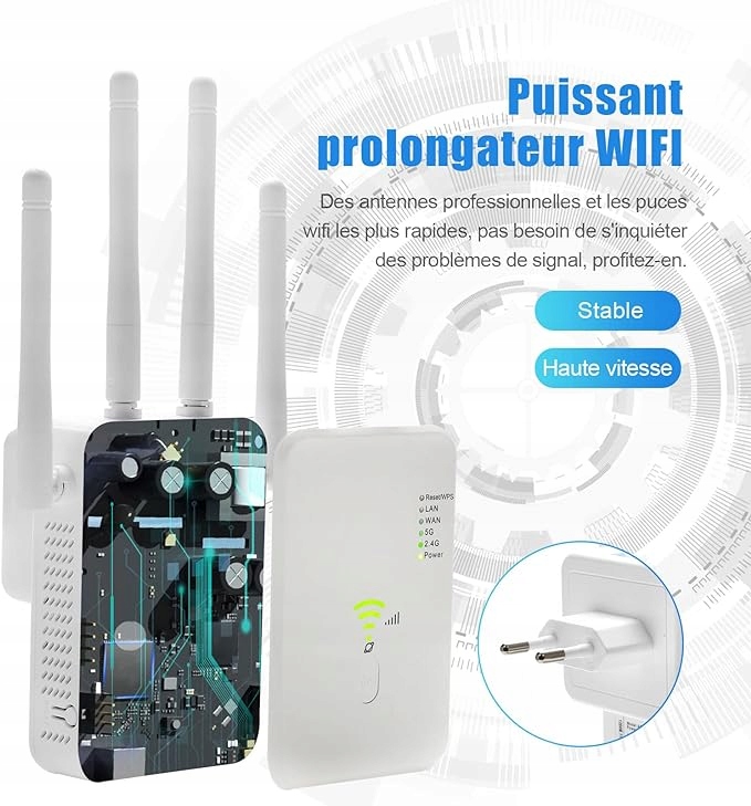 Скорость до 1200 Мбит/с для более быстрого Интернета: при увеличении скорости передачи данных до 1200 Мбит/с, наш усилитель обеспечивает более быстрый и плавный доступ в Интернет для всех ваших устройств. Теперь вы можете беспрепятственно транслировать фильмы, играть в онлайн-игры, пользоваться Интернетом или проводить видеоконференции, не беспокоясь о задержках или заиканиях.