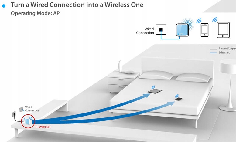 Маршрутизатор TL-WR802N может работать в режимах точки доступа, маршрутизатора, моста, клиента и повторителя, чтобы предоставить пользователям максимально возможное количество приложений.
