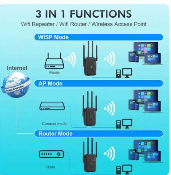 - Повторитель WLAN 1200 Мбит/с, усилитель WLAN Двухдиапазонный усилитель WLAN Усилитель сигнала с 2 портами LAN, WPS, антеннами 3dBi x4 Совместим со всеми устройствами WLAN