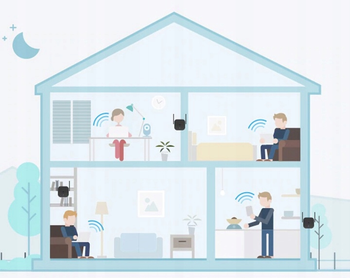 - устройство подключается по беспроводной сети к роутеру, расширяя и усиливая сигнал Wi-Fi в каждом уголке дома.