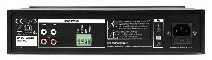 Усилитель, по сути, представляет собой универсальное решение для небольших звуковых установок. Он подходит для управления динамиками на 100 В, но с динамиками малой мощности на 100 В вы все равно можете управлять большим количеством динамиков для создания фоновой музыкальной инсталляции. При необходимости также возможно подключение штатных колонок. Благодаря использованию динамиков на 100 В, динамики можно без потерь подключать на большое расстояние. Несколько динамиков на 100 В также можно соединить последовательно для упрощения установки. Для магазинов или ресторанов звуковая система на 100 В часто является правильным выбором.