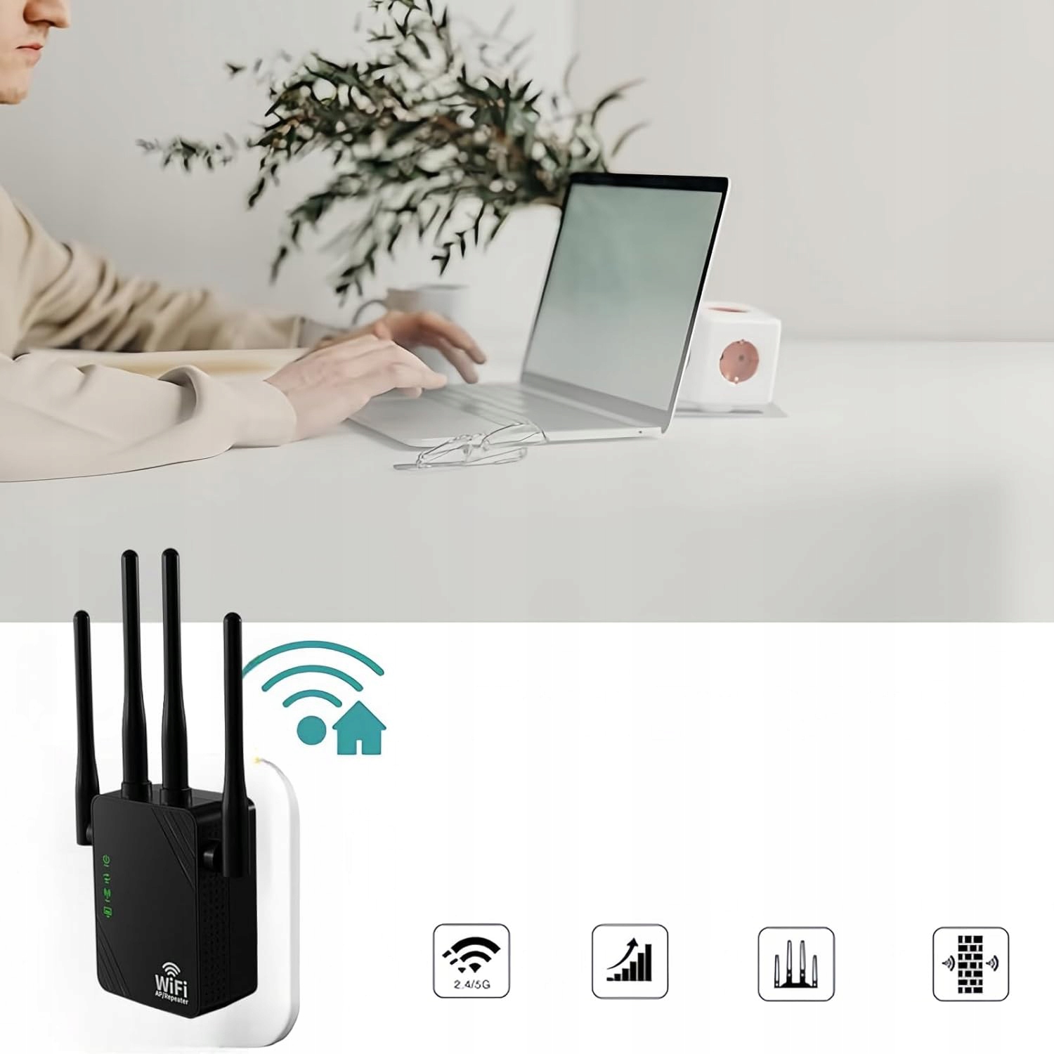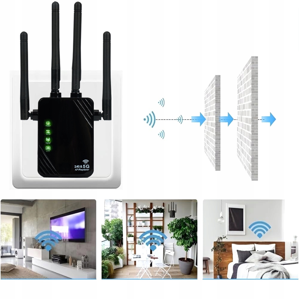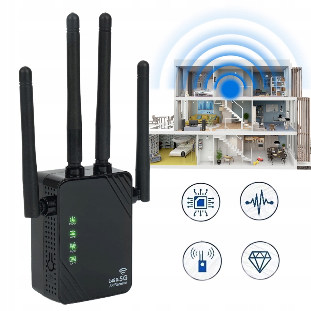 Усилитель Wi-Fi 1200 MBIT/S, WiFi Dalband 5G/2,4 ГГц Усилитель WiFi, 4 антенны