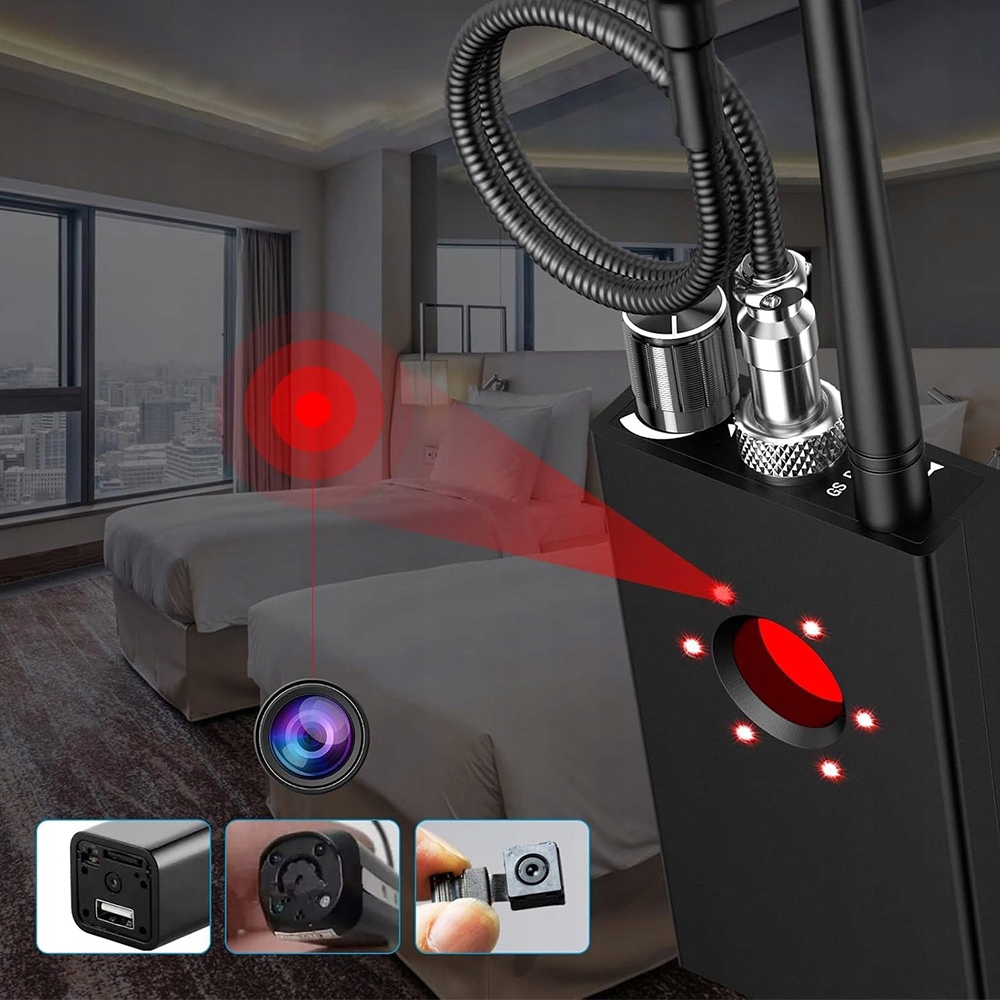 ✅ Производитель дополнительно использовал лазерный детектор в устройстве, который позволяет вам видеть линзы камеры, скрытые в комнатах. Отражите свет от объектива камеры, затем мы можем увидеть их в виде точки через видоискатель на передней части оборудования.