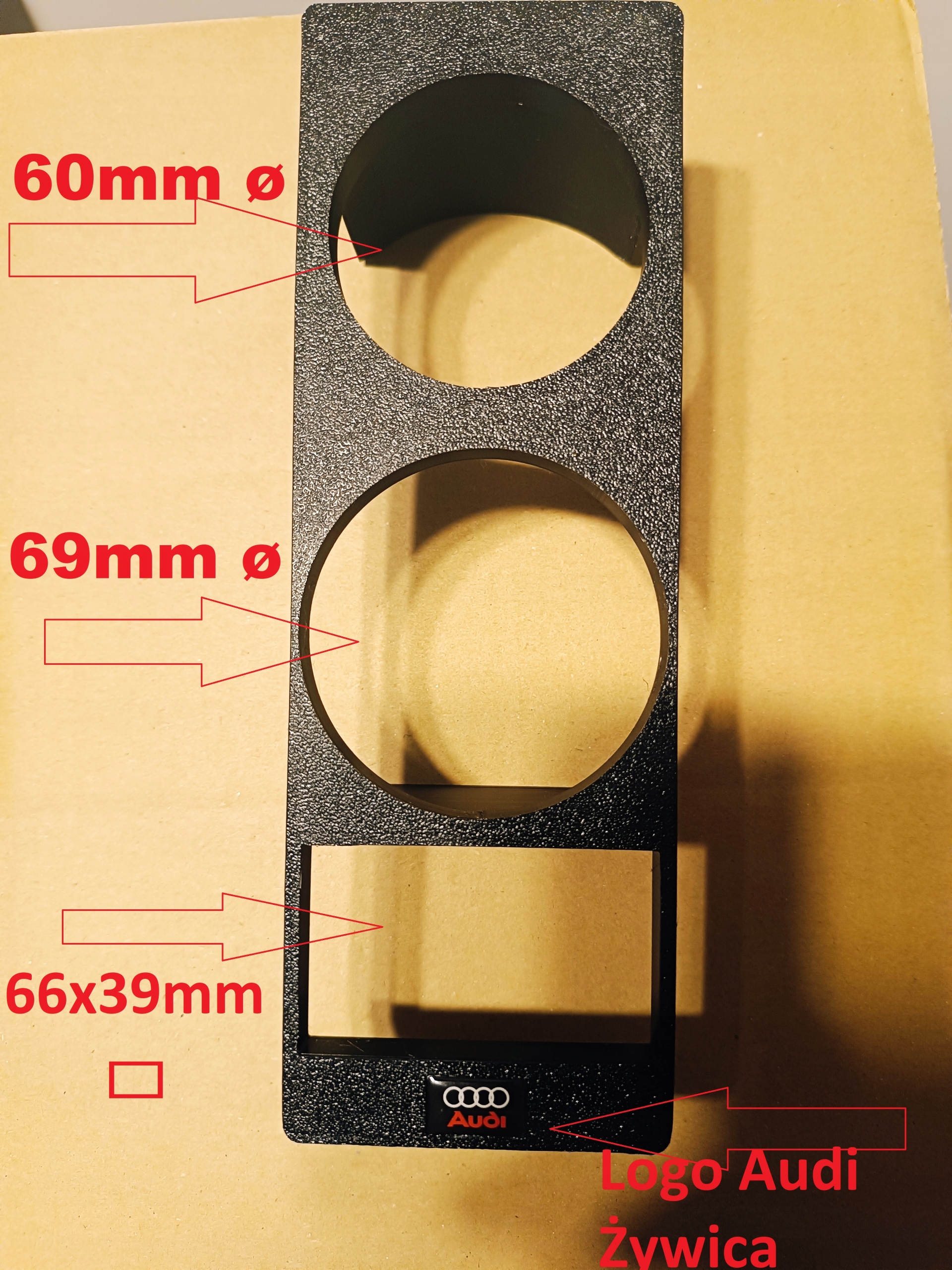 Отверстия в нашем подстаканнике имеют диаметр 69 мм и 60 мм, что позволяет с комфортом разместить большие и маленькие банки и даже большие кружки с любимым кофе из МК или заправки. Кроме того, имеется небольшой карман для мелочей и монет, дополненный красивым логотипом Audi из смолы.