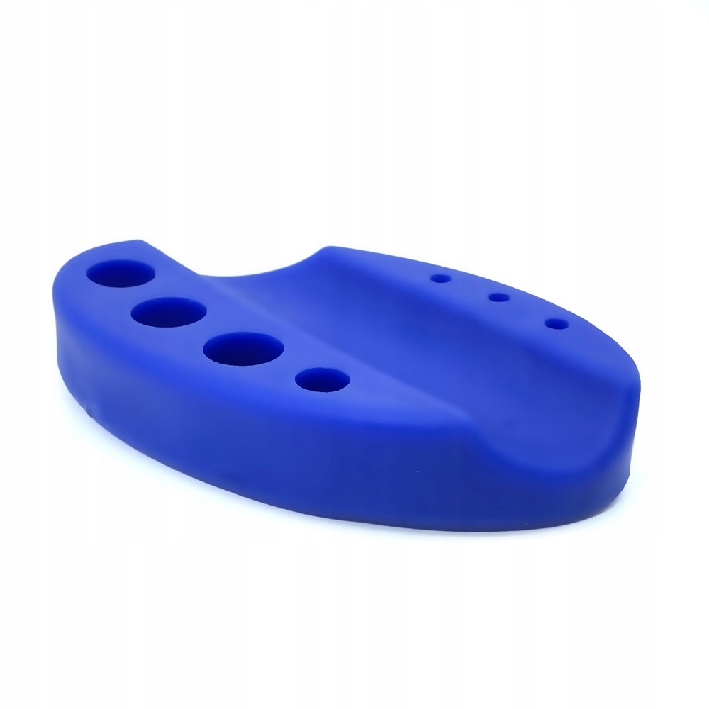 Силиконовая подставка для инструментов – очень полезная вещь для каждого мастера. Гибкий и надежный, он позволяет отложить бритву во время перерыва в работе, полностью исключая контакт иглы с посторонними предметами. Колпачки с пигментами можно разместить в углублениях на верхнем крае подушечки. Удобная подставка имеет выемку для ручки тату-машинки и специальные небольшие отверстия для микрокистей. Изготовлен из прорезиненного материала, который не скользит по поверхности во время работы.