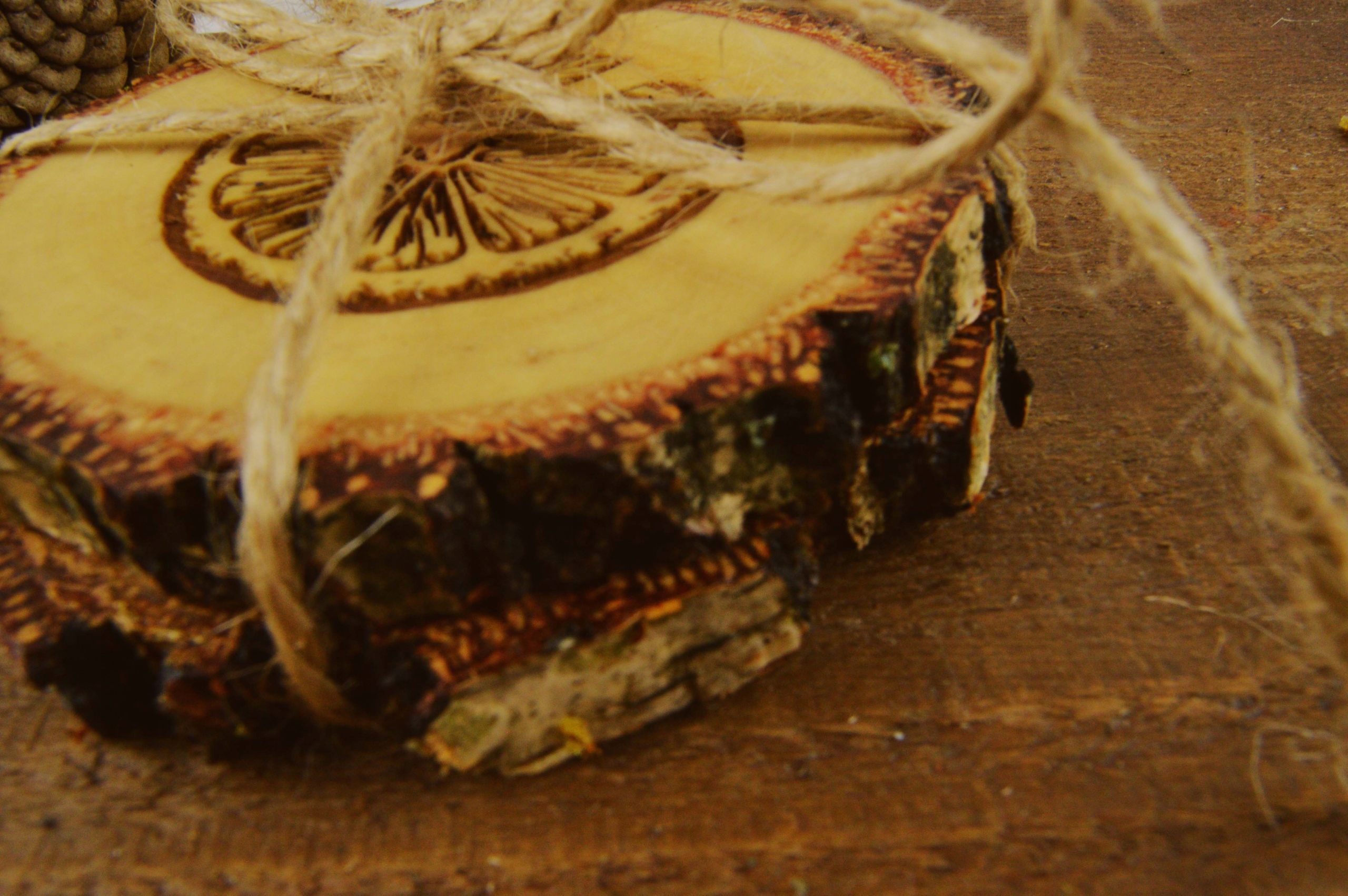 - подставки перевязаны натуральной джутовая веревка, представляющая собой готовую вещь для подарка,