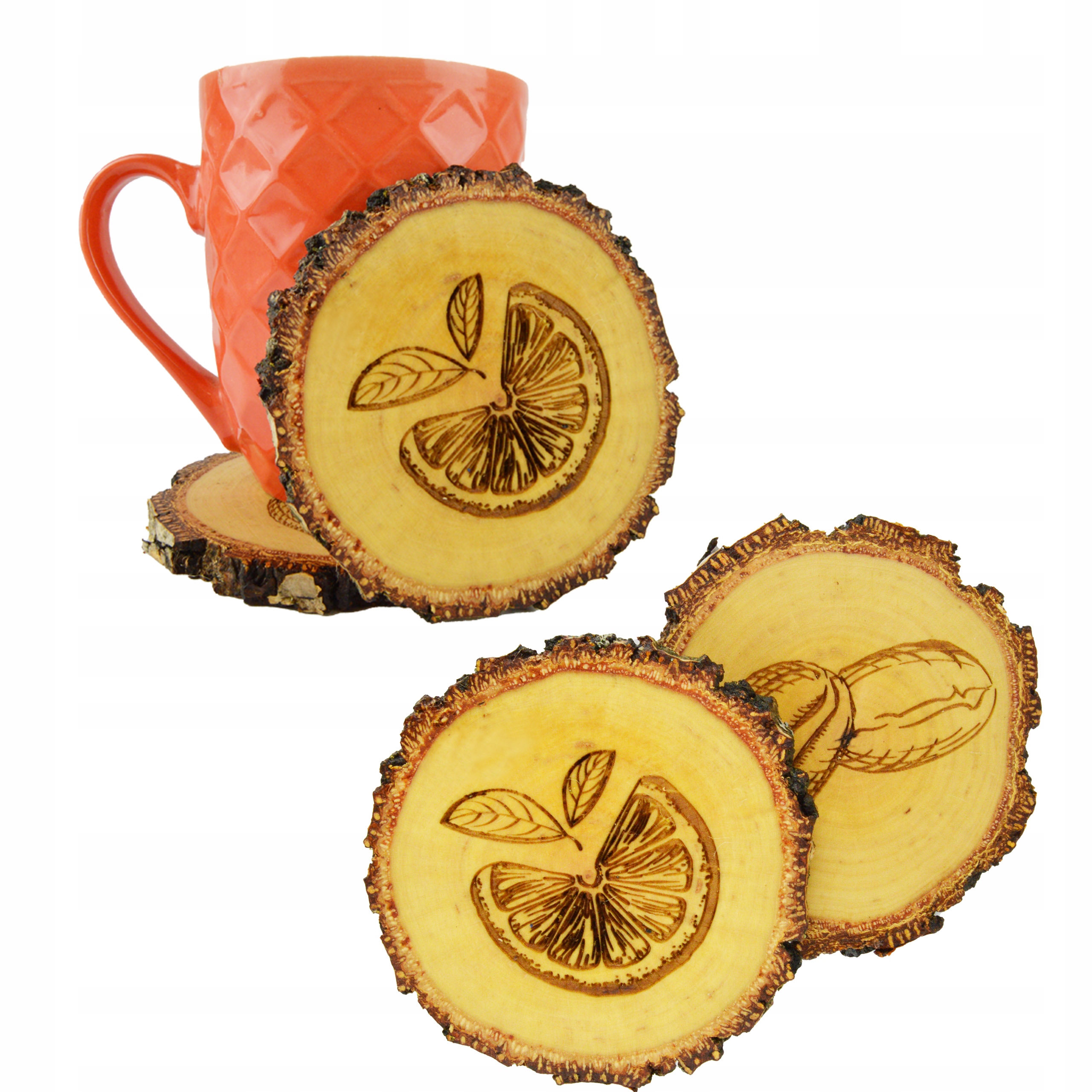 Набор из 2 красивых промасленных подставок для кружек для бабушки и дедушки, диаметр: 9-10 см, толщина 1 см с гравировкой и красивой декоративной корой