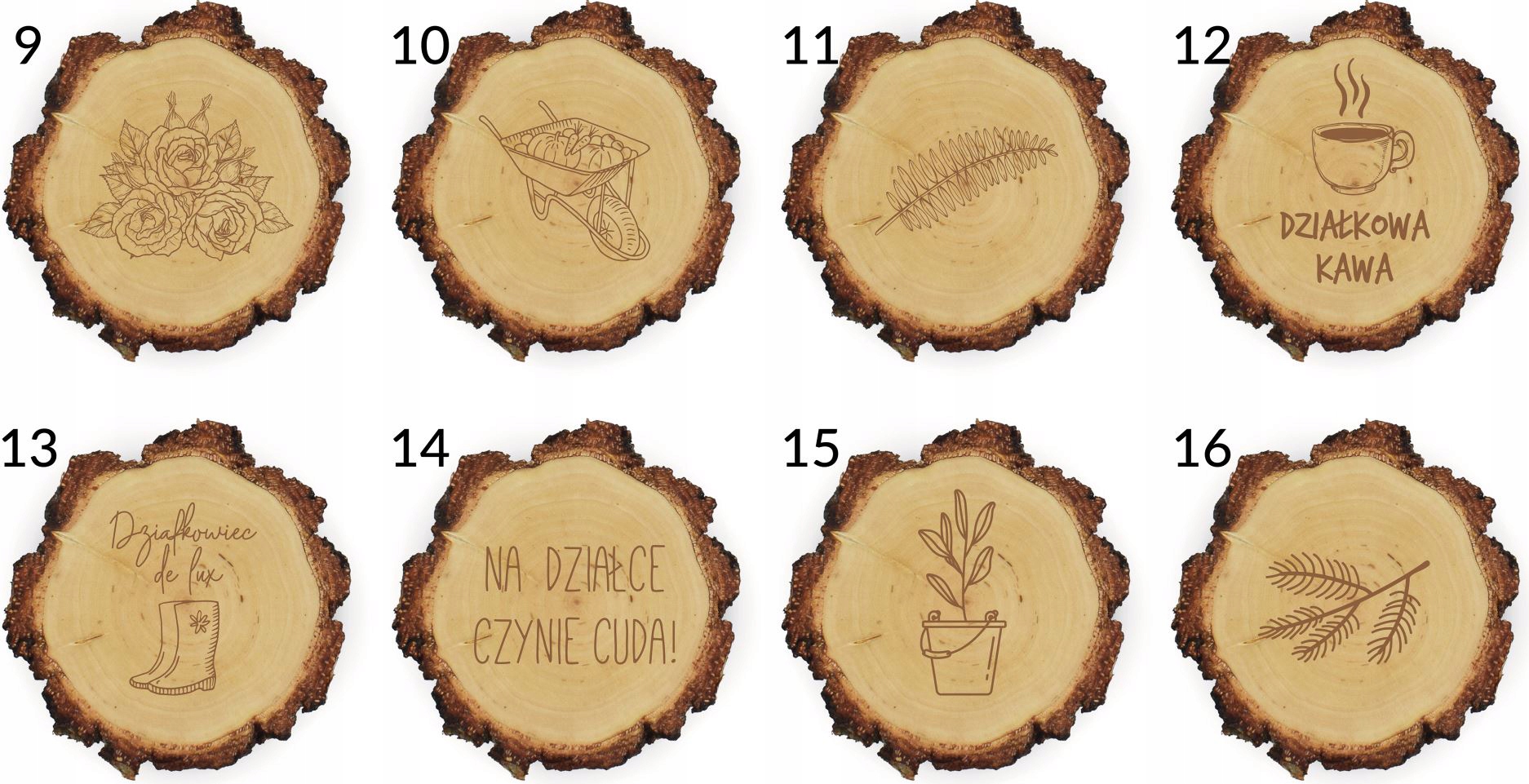 Мы заботимся о качестве. Благодаря тщательной сушке срезы сохраняют равномерный цвет по всей поверхности, хорошо видна структура древесины и гравировка.