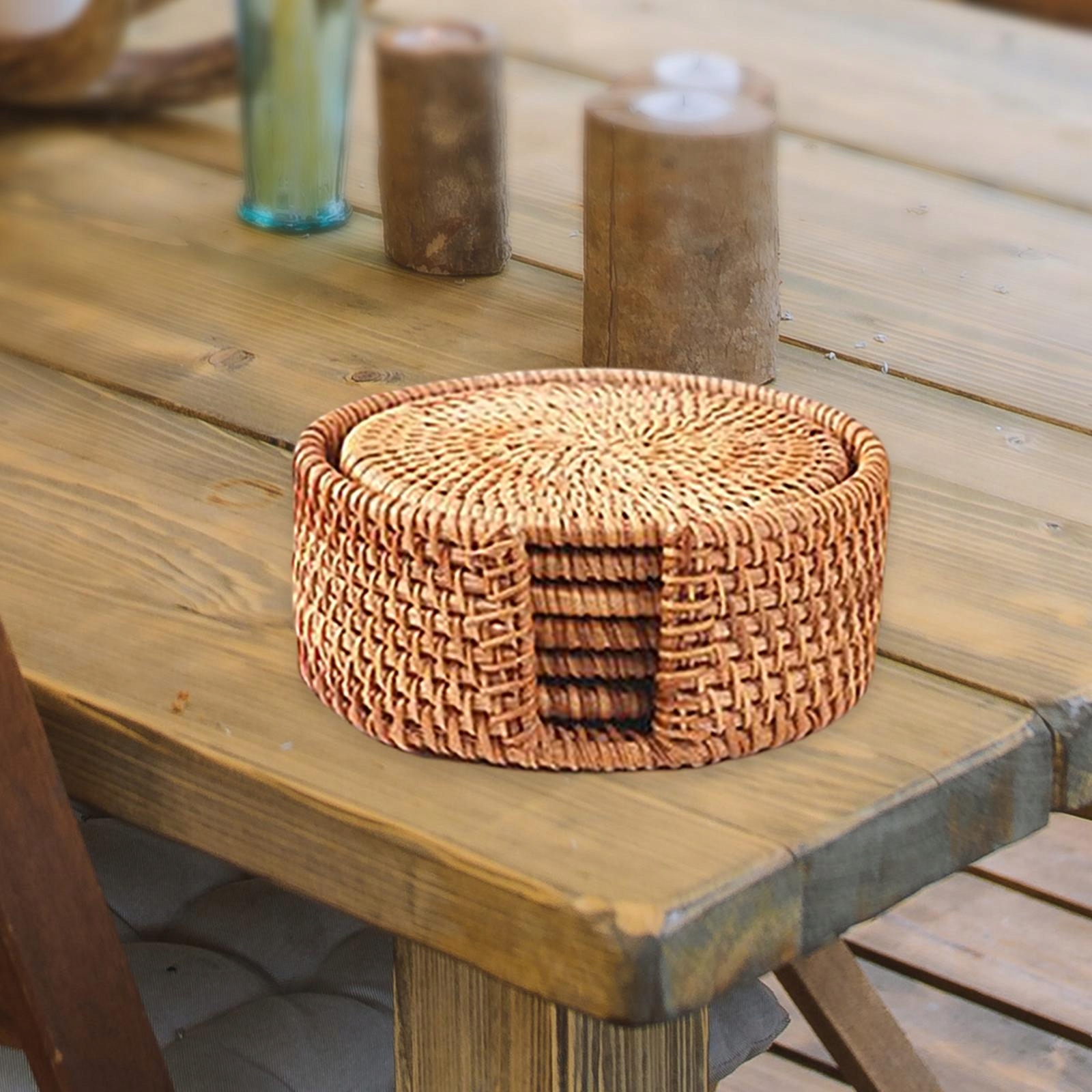 В комплект входит: В комплект входит 6 высококачественных подставок из натурального ротанга, которые можно компактно использовать дома, на кухне, на природе, в путешествиях, в туризме.