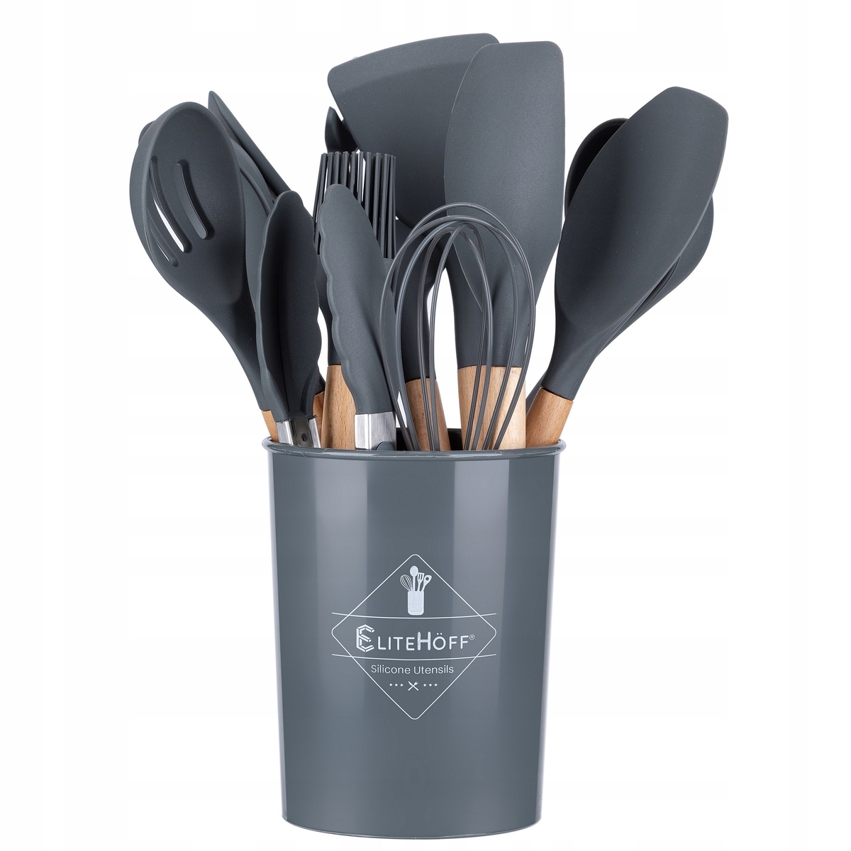 ПІДСТАВКА + КОМПЛЕКТ КУХОННОГО ПОСУДУ набір 12 ел. ELITEHOFF 6289 СІРИЙ