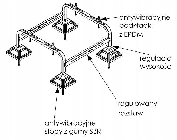 против вибрационной основы, предназначенное для неинвазивной установки тепловых насосов и конденсаторов, установленных на грунтовых или плоских крышах до 5%. Основа обеспечивает исключительную стабильность и многоуровневые настройки, что позволяет установить большинство стандартных устройств на различные типы субстратов.
