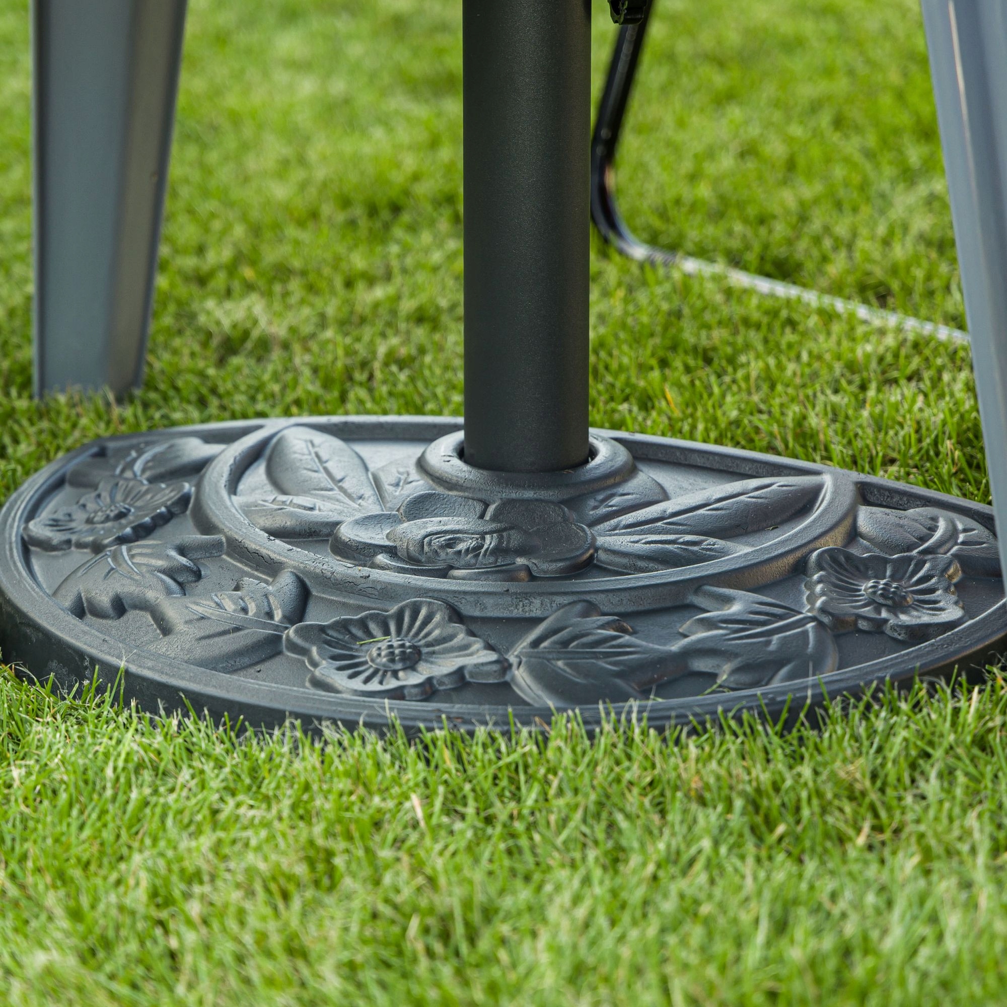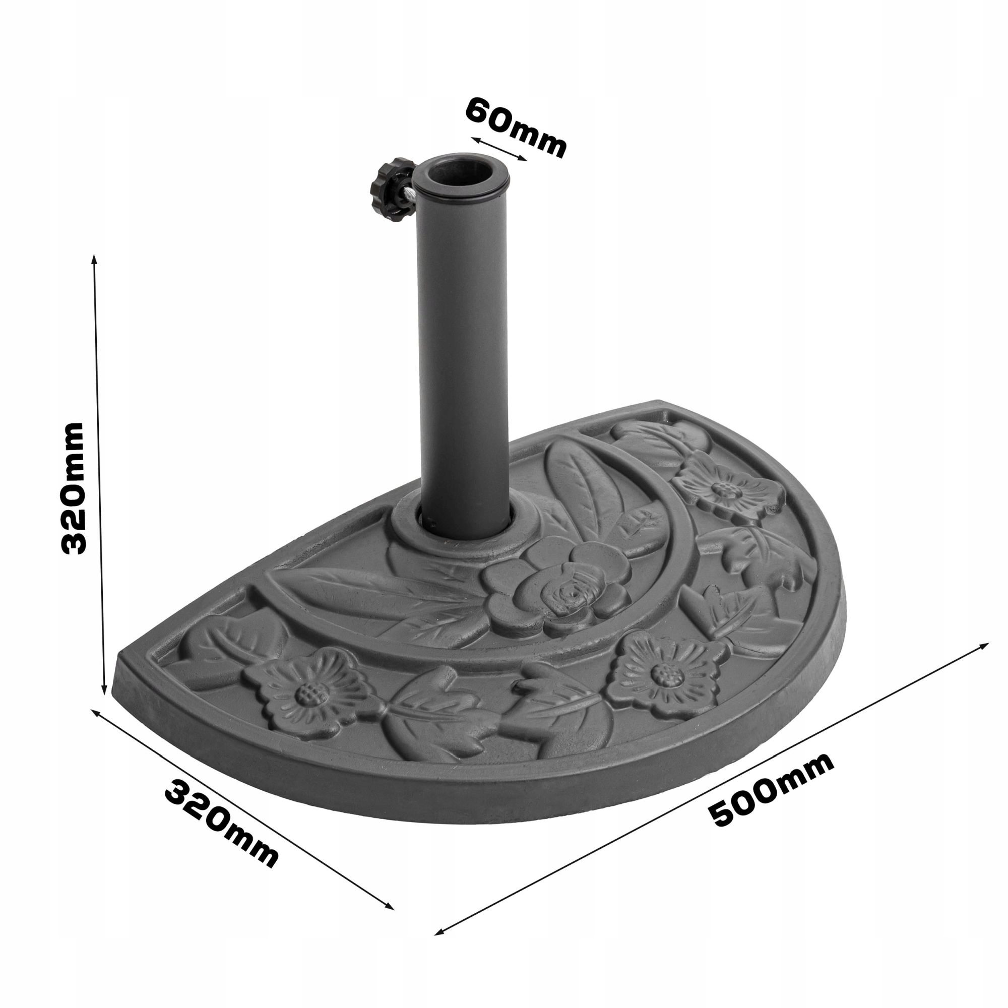 Вес основания составляет 9 кг, поэтому оно идеально подходит для зонтов на террасе и балконе половинного размера или легких зонтов с меньшим диаметром купола.