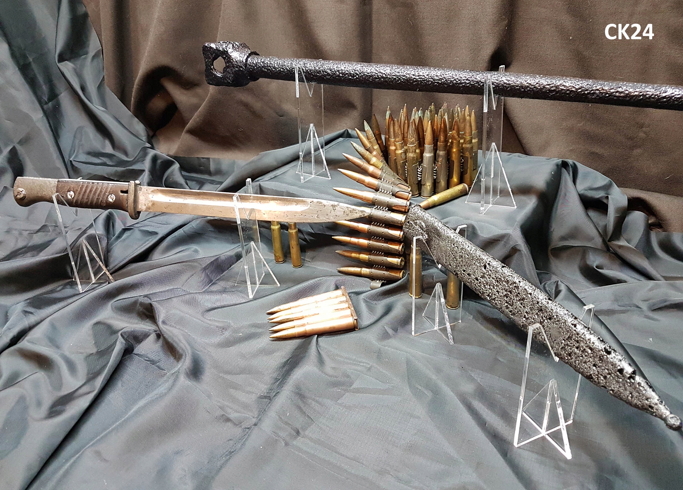 CK24C Идеально подходит для демонстрации предметов различных размеров: компонентов огнестрельного оружия, штыка, ножа, сабли, боеприпасов к винтовке, минералов и многого другого. Для демонстрации в витринах, витринах и на полках домашней коллекции.