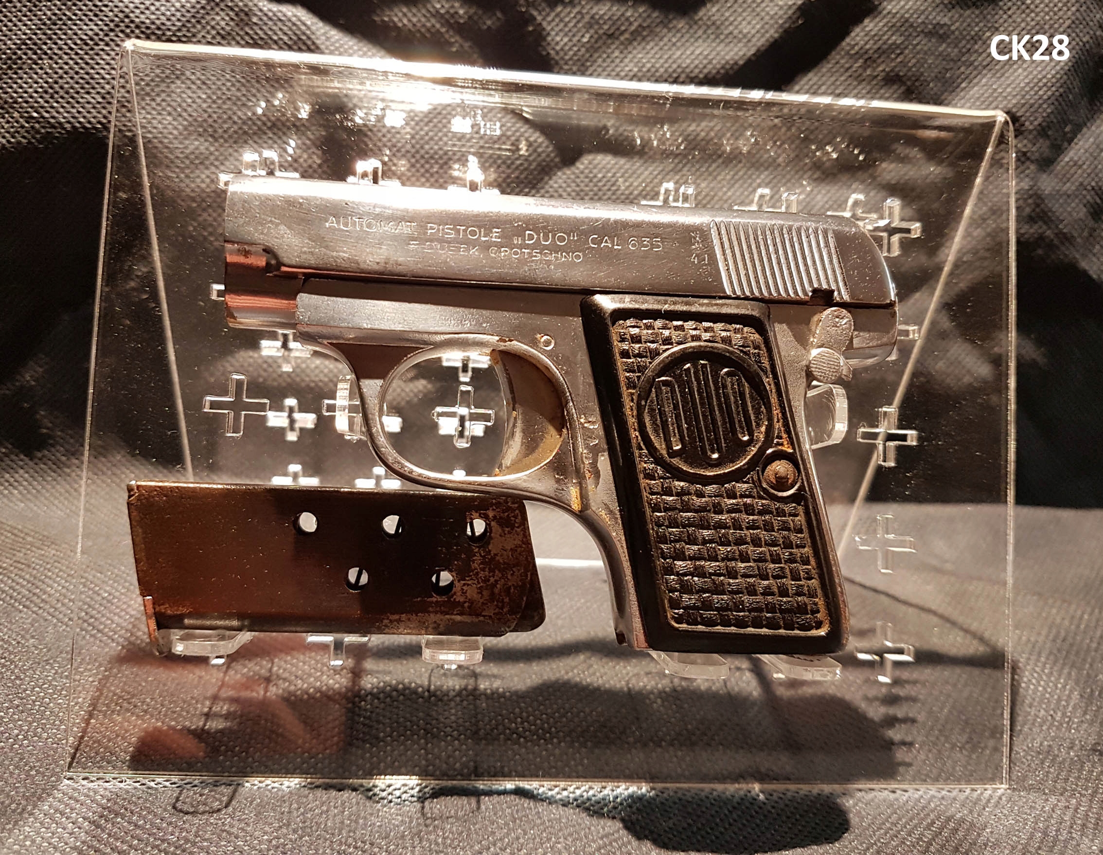 СК 28А — это уникальная витрина, с помощью которой мы можем комбинировать различные сувениры и весьма оригинально их демонстрировать, например: пистолеты, ножи, мечи, медали и другие предметы коллекционирования. Дисплей обеспечивает удобное двустороннее представление товаров. В витрине имеются многочисленные крестообразные отверстия, в которые мы помещаем ремешок, которым фиксируем и регулируем товар по горизонтали и вертикали.