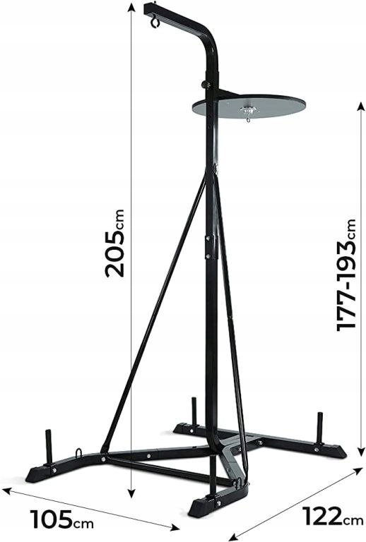 Отдельно стоящая боксерская груша и держатель спидбола регулируются по высоте в четырех направлениях, поэтому вы можете отрегулировать ее на нужную высоту и настроить это фитнес-устройство. Крючки для хранения для крепления противовесов для повышения устойчивости стойки (грузоподъемность до 15 кг).