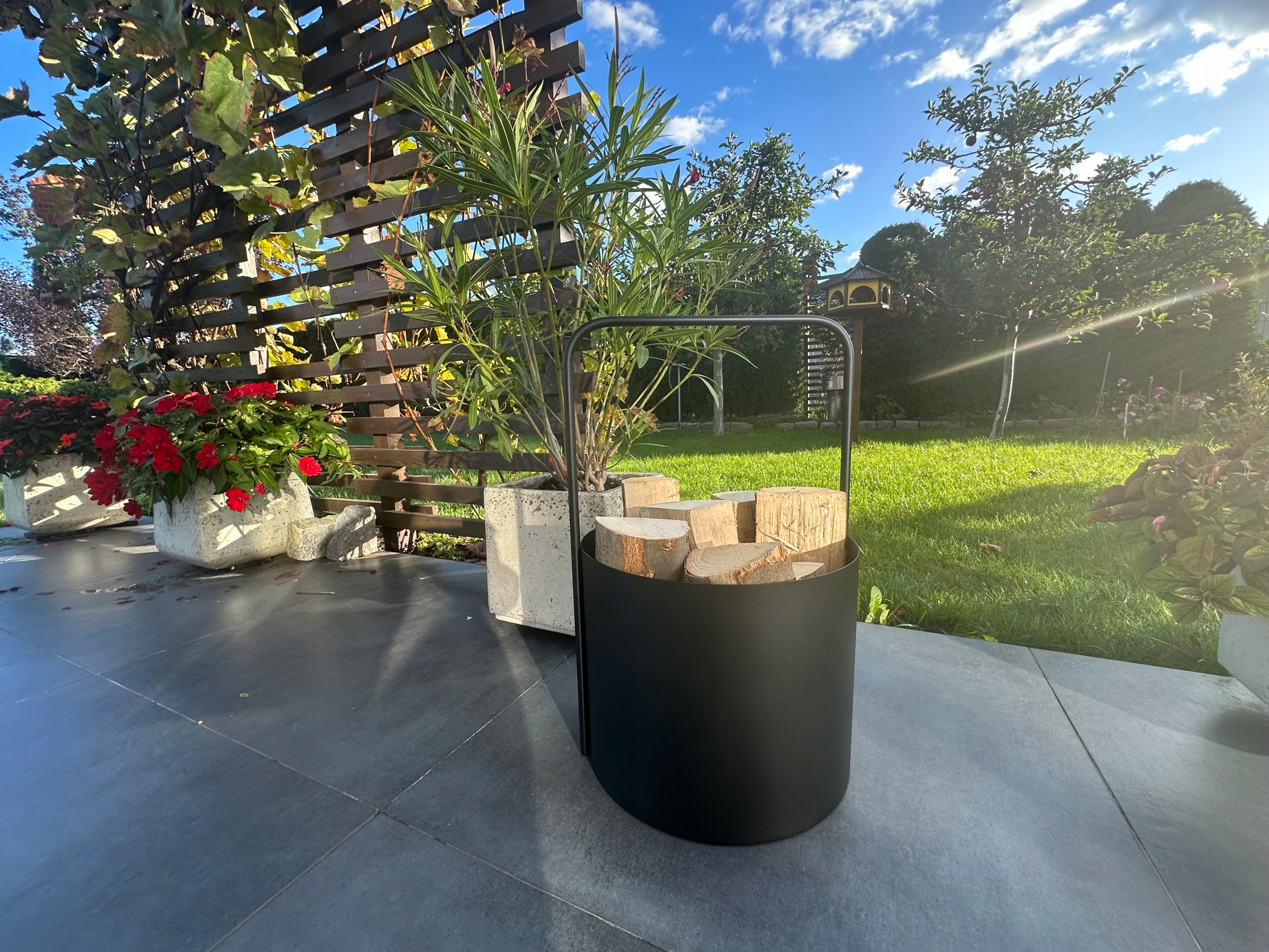 Современная корзина для дров изготовлена именно из высококачественной стали с порошковым покрытием с использованием современных технологий.