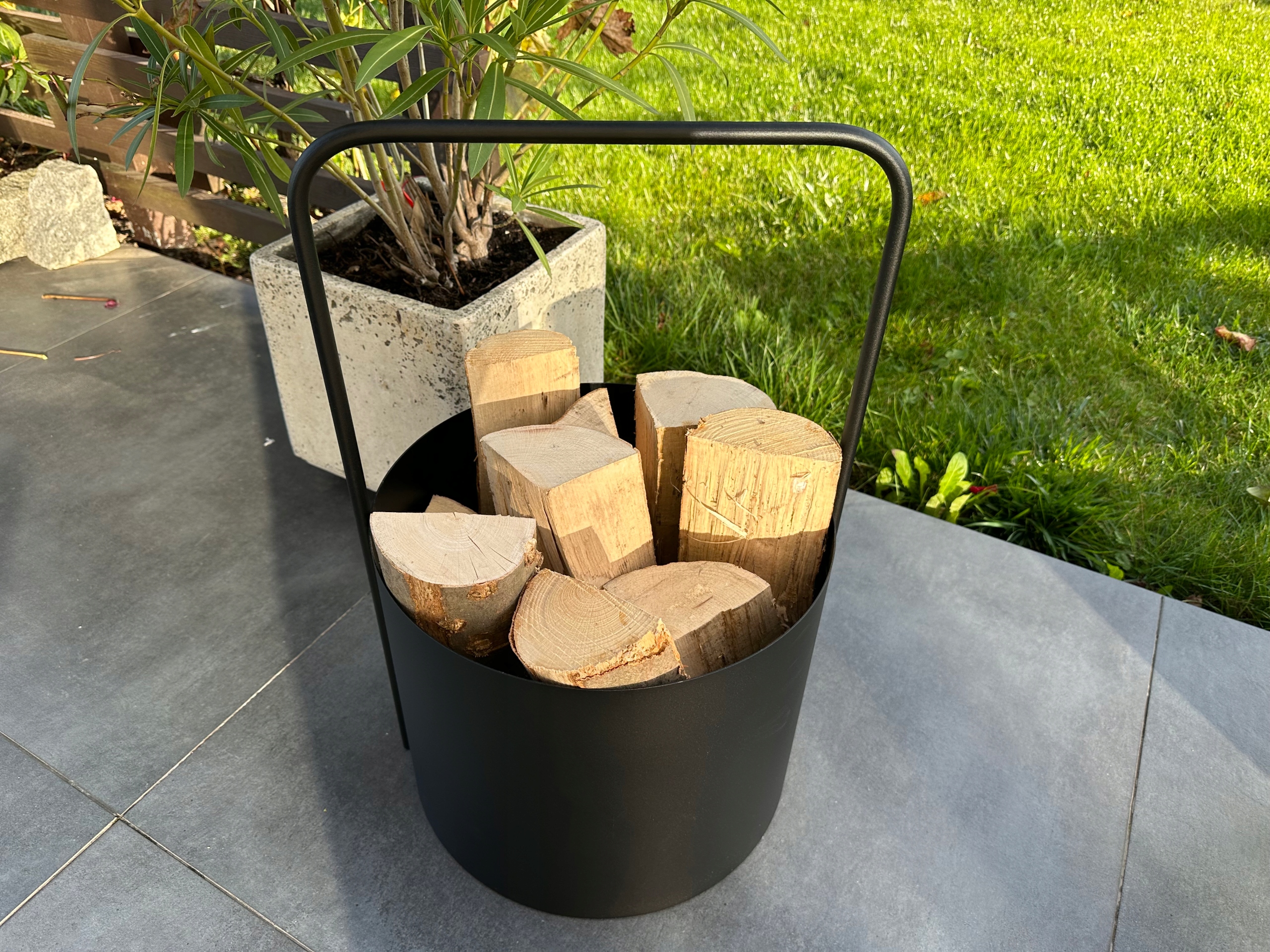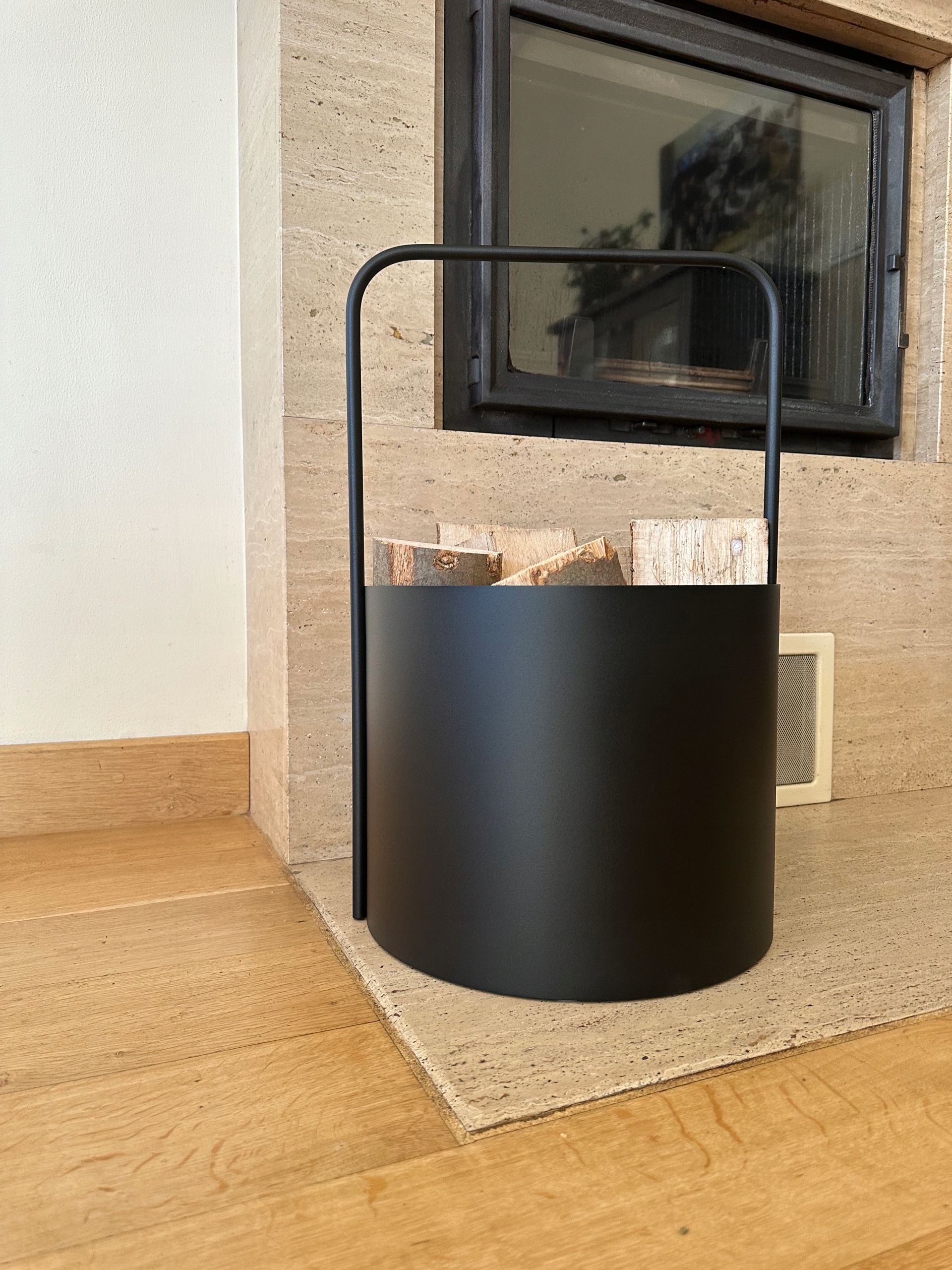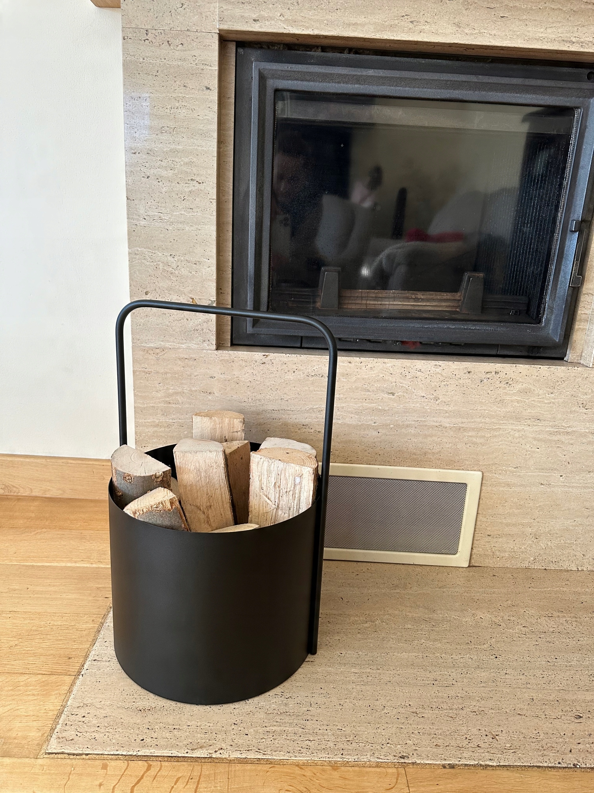 >Благодаря удобной металлической ручке позволяет легко подносить дрова к камину снаружи. Чрезвычайно функциональный и вместительный.