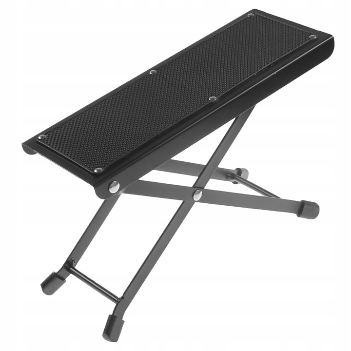 Удобная и прочная подножка для гитариста, в основном предназначенная для классических гитар, изготовлена из металла черного цвета. Имеет устойчивую конструкцию, а в верхней части имеет резиновую противоскользящую накладку на ноге.