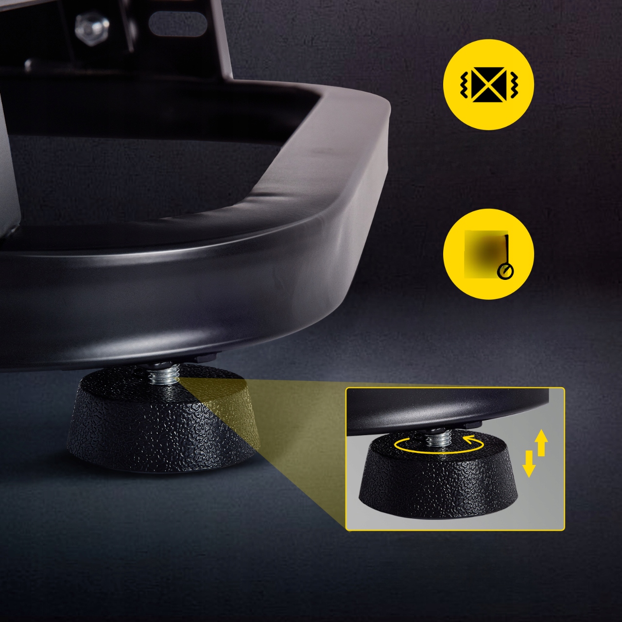 В нижней части кабины гоночного симулятора расположены четыре противоскользящие резиновые накладки, обеспечивающие надежное сцепление с полом и устойчивость кронштейна. Поэтому вам никогда не придется беспокоиться о повреждении пола.