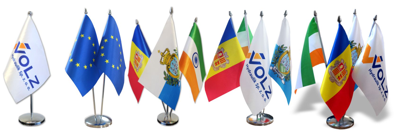 Стенд из стали, наполненной никелем, с атласным флагом любой страны или с вашим печати. 24x15cm Сделано на атласной ткани