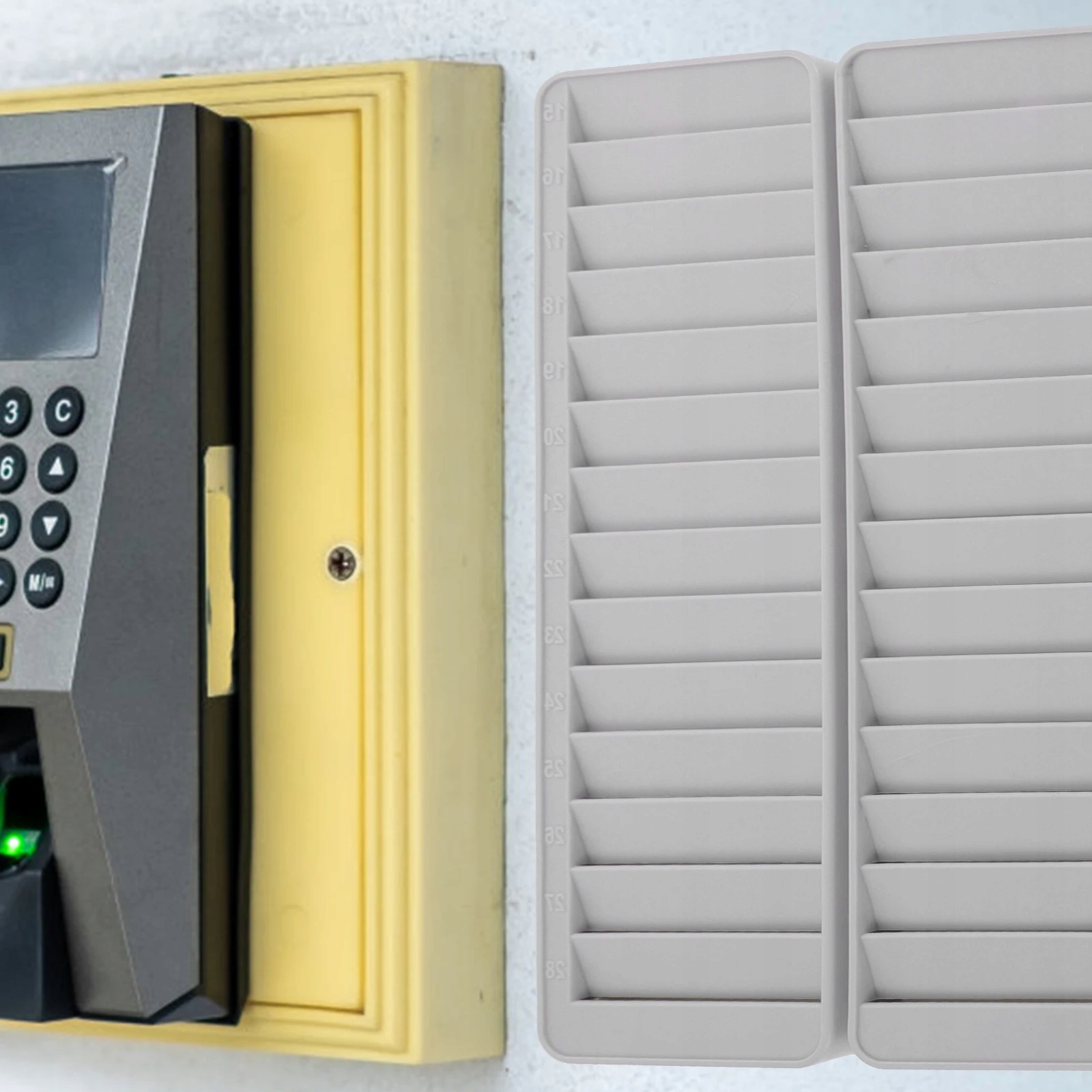 Держатель посещаемости можно использовать вместе с автоматом посещаемости в офисах, на фабриках и в других местах.