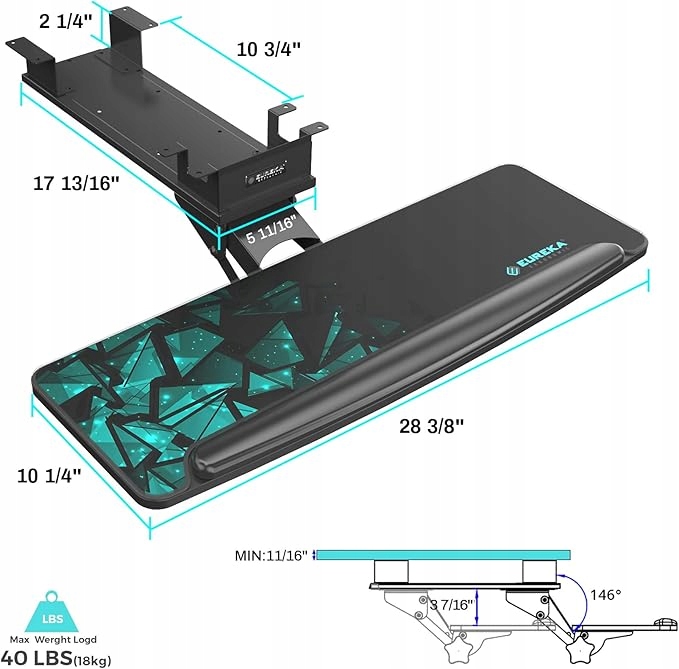 Регулируемая полка для клавиатуры EUREKA ERGONOMIC под столом