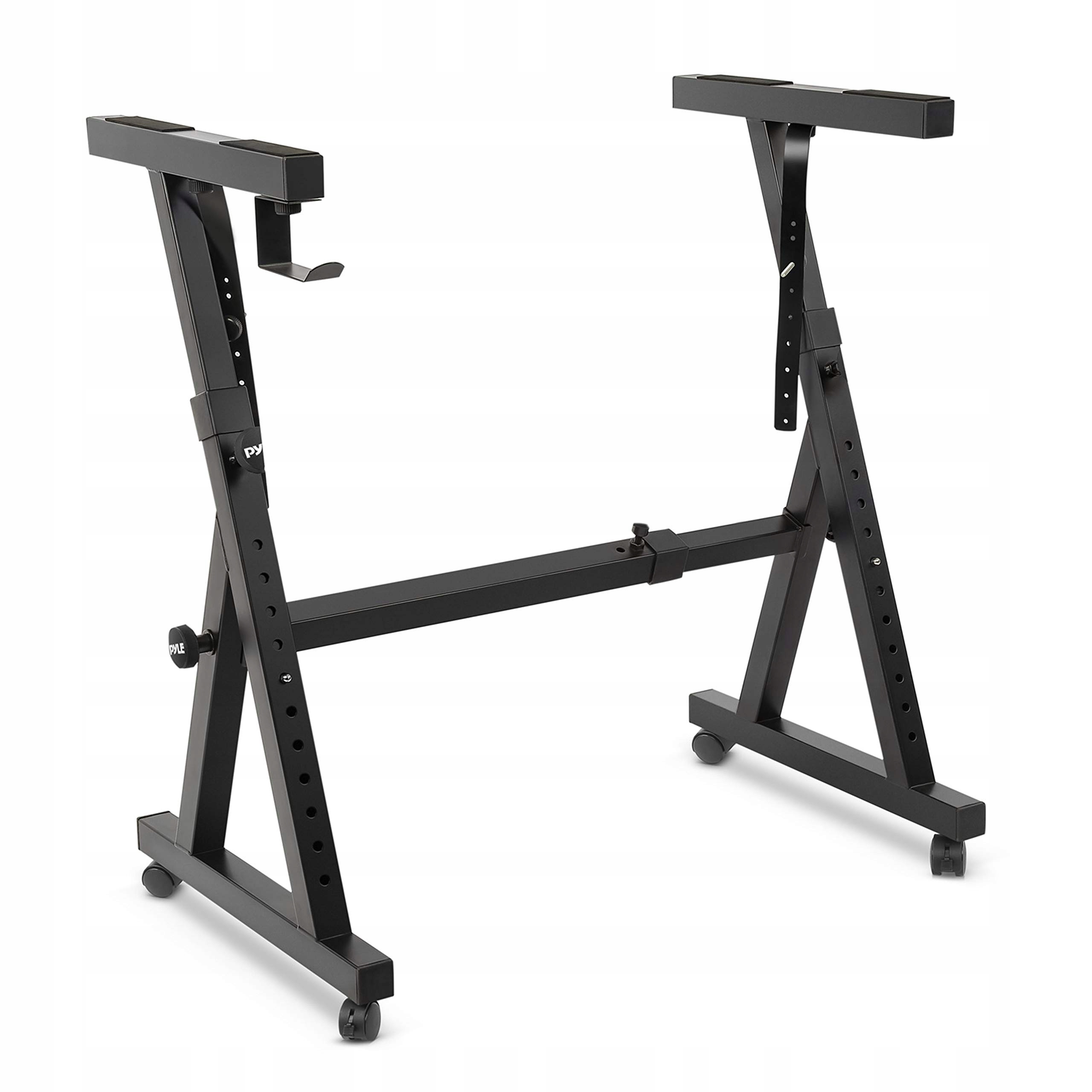 Прочная подставка для электронной клавиатуры PYLE Accessories (PKST48) оснащена поворотными колесиками с блокировкой, которые облегчают перемещение по сцене и предотвращают случайное перемещение во время игры. Эта портативная подставка идеально подходит для музыкантов на любом этапе их карьеры. Она изготовлена из прочной легированной стали и имеет глянцевый черный цвет, добавляющий элегантности.