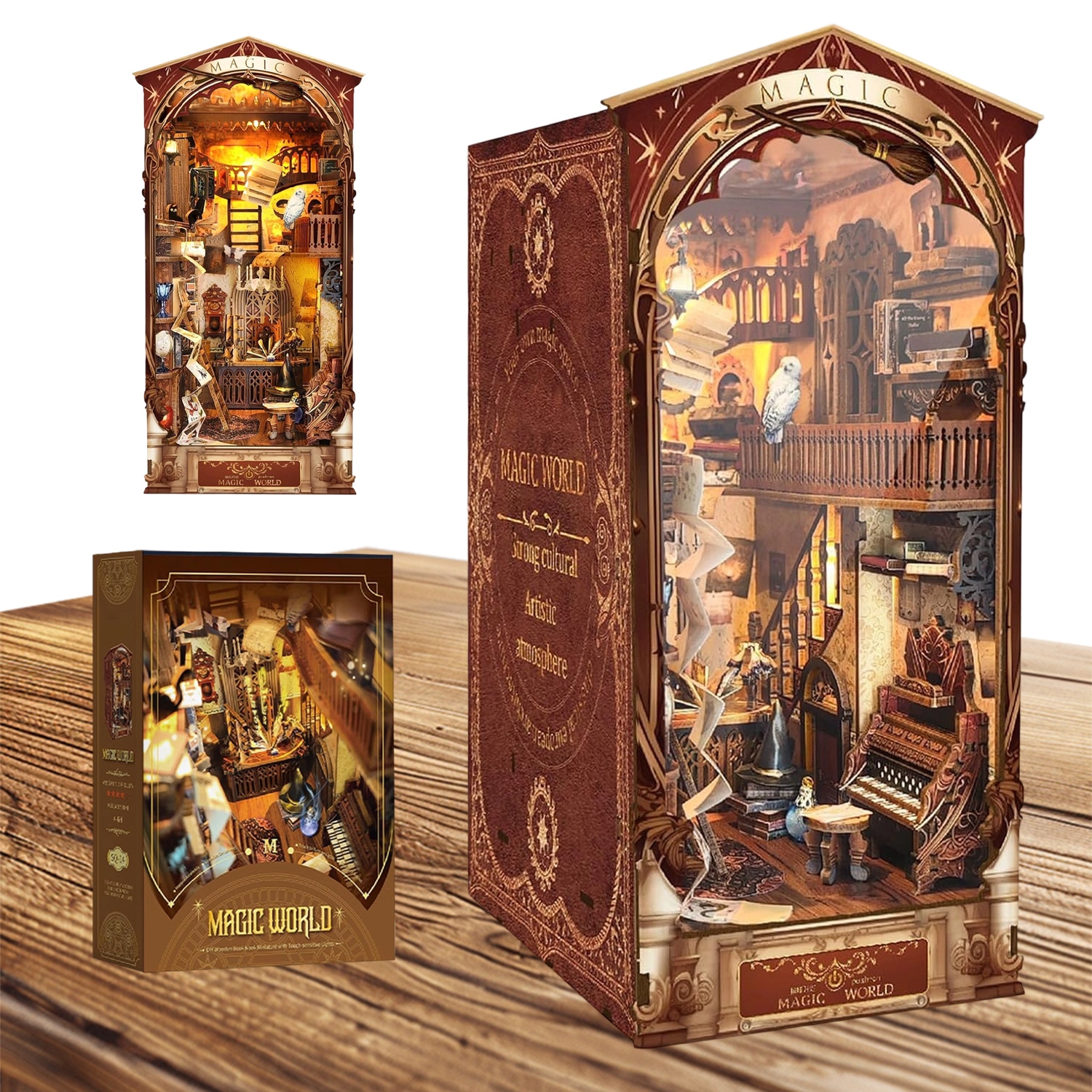 3D-ПАЗЗЛ ПОДСТАВКА ДЛЯ КНИГИ СВЕТОДИОДНАЯ МИНИАТЮРА DIY Волшебный мир Книжный уголок
