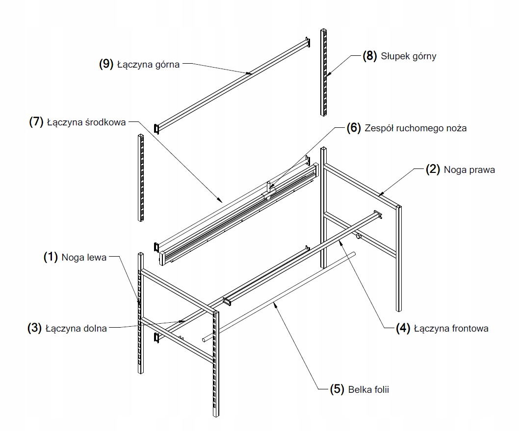 Расширение стола изготовлено из металлических профилей и состоит из двух боковых стоек и верхнего соединителя. Он отвечает за стабилизацию верхней части стола и позволяет установить дополнительное оборудование (например, полку или ручку).