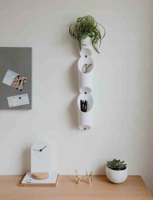 Сосуды красивой формы имеют форму, напоминающую органные трубы, и могут использоваться для хранения не только растений, но и компактных предметов открытого хранения, идеально подходящих для небольших помещений. Эти сосуды легко собрать, они включают в себя все подвесные приспособления, и для каждого набора из трех сосудов требуется только одно отверстие в стене для подвешивания.