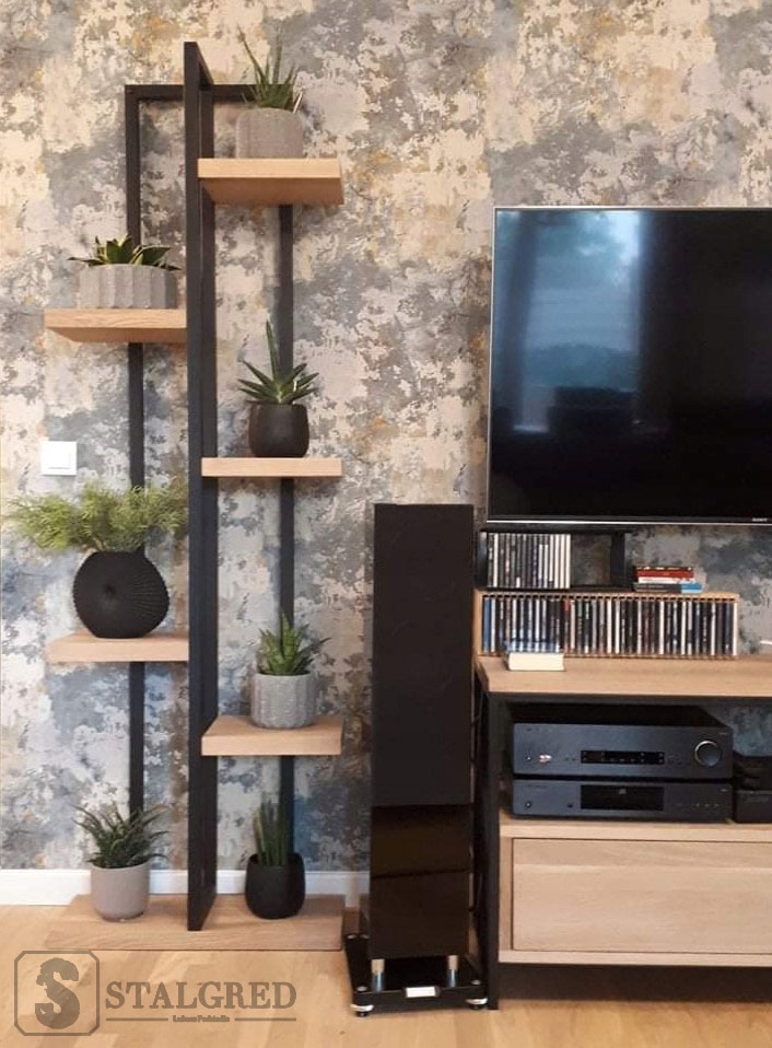 Вы можете выбрать цвет металлических элементов и сделать полки из другой доски или дерева, чтобы идеально подобрать их к вашей расстановке.
