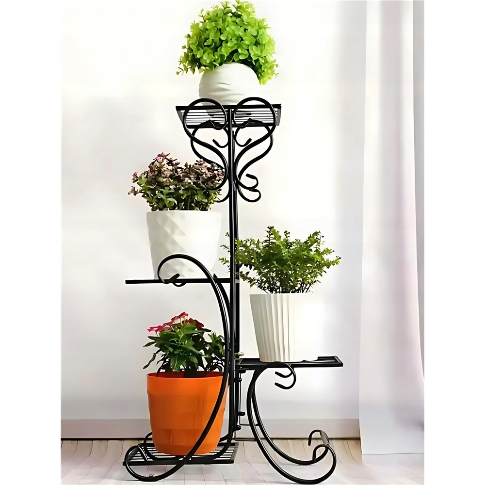 Металлическая подставка для цветов с 4 полками | 79x42x24 см | ЧЕРНЫЙ