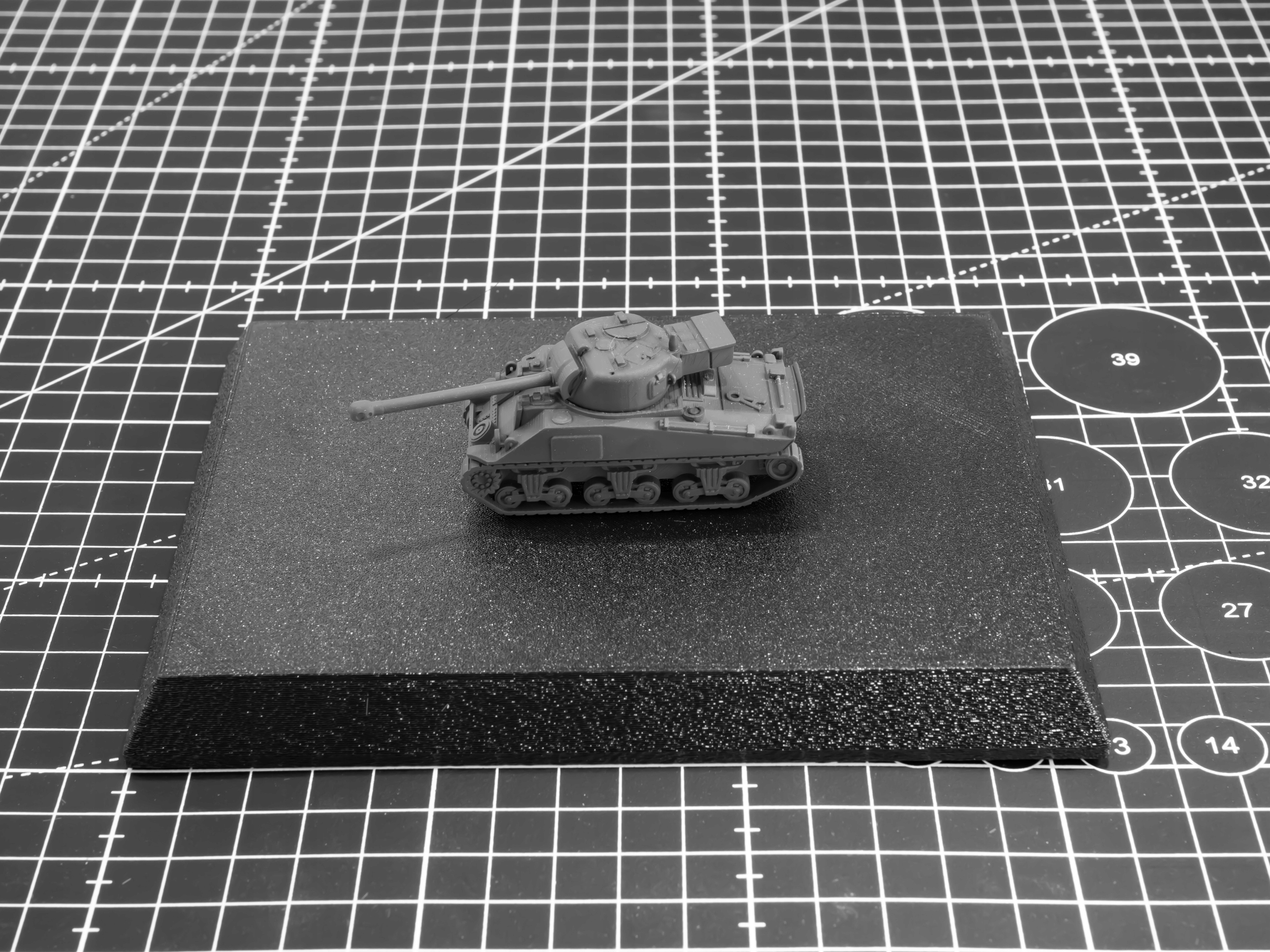 Вся внешняя поверхность текстурирована, отражает свет равномерно - поэтому для хорошего вида не требует дополнительной обработки/покраски (на фотографиях сравнивается с "гладкой" базой TAMIYA).