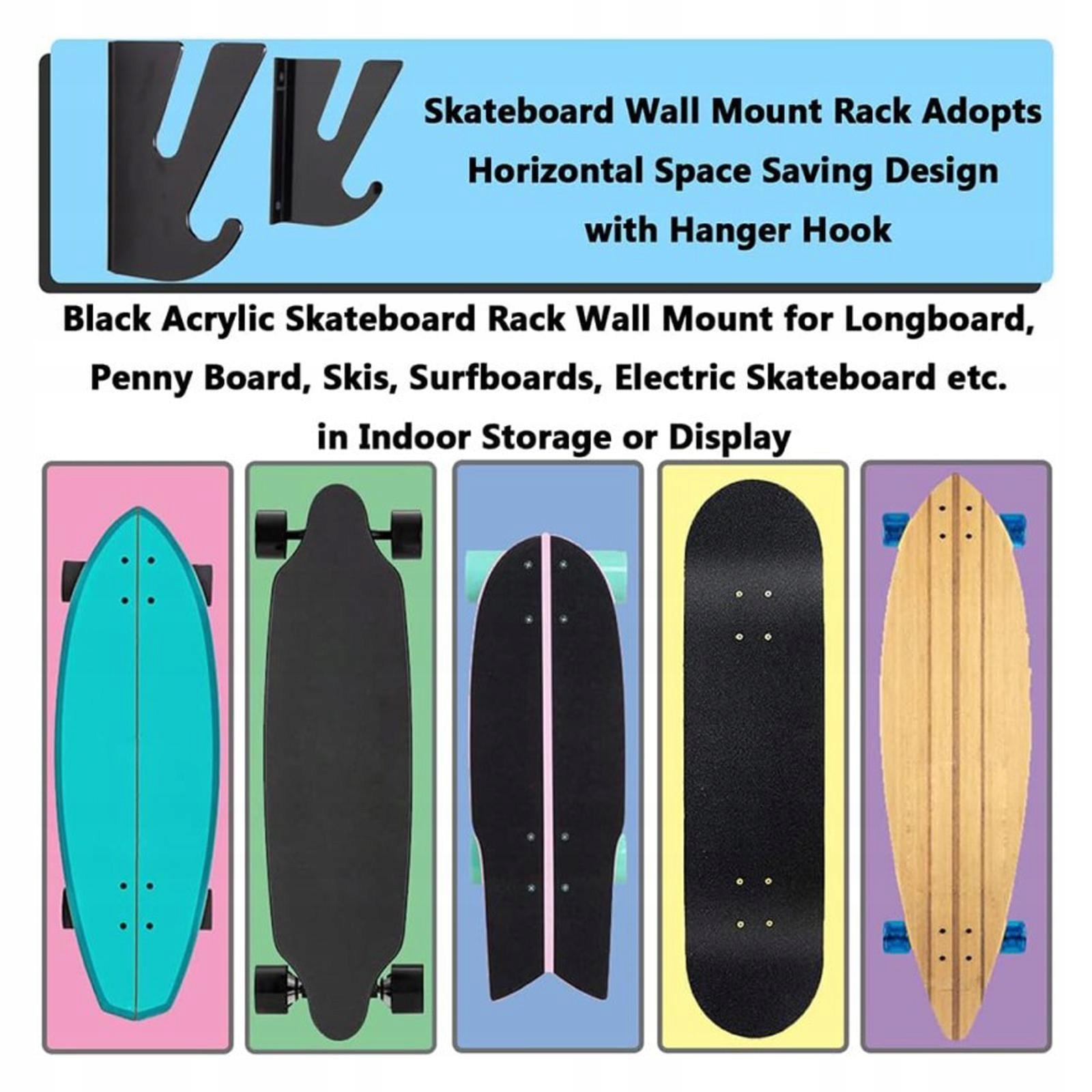 [высококачественный материал]: эта стильная стенда скейтборда изготовлена из толстого высококачественного акрилового материала. Редакция и полировка обеспечивает надежность и прочность. Установка на стене было разработано для эффективного использования вертикального пространства, тщательного хранения ваших вещей и избежать беспорядка. Двухслойная структура может разместить два одновременно, удовлетворяя ваши потребности в хранении. В течение нескольких минут вы можете установить его на стене. Эта трехслойная стойка для скейтборда на стене гарантирует, что ваши аксессуары не упадут.