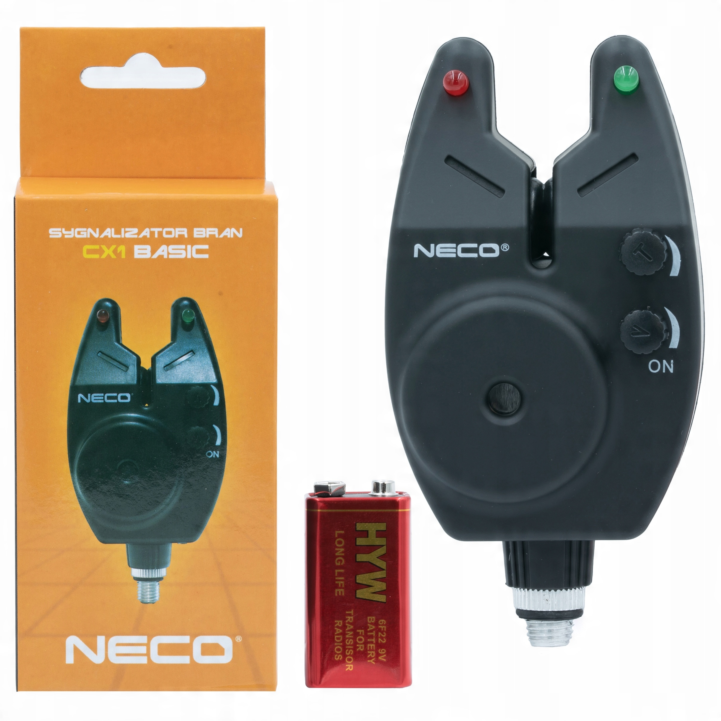 - Сигнал питается от батарейки 9 В (входит в комплект)