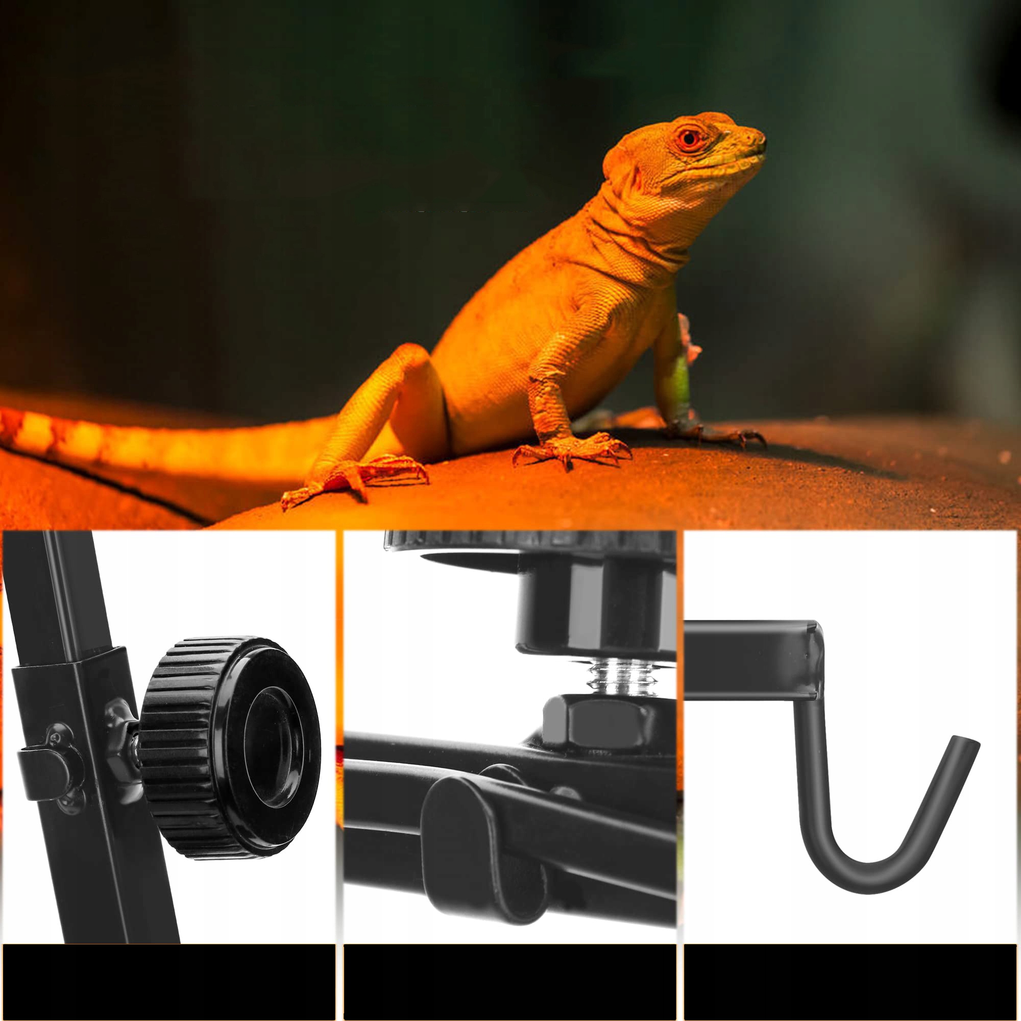 ✔️ 【Широкое применение】 Регулируемый держатель лампы подходит для различных резервуаров для рептилий и коробок для домашних животных, широко используется для различных рептилий и земноводных, включая раков-отшельников, бородатых драконов, черепах, гекконов, ящериц, лягушек, сверчков, пауков и т. д.(ЛАМПА И абажур в комплект не входит)